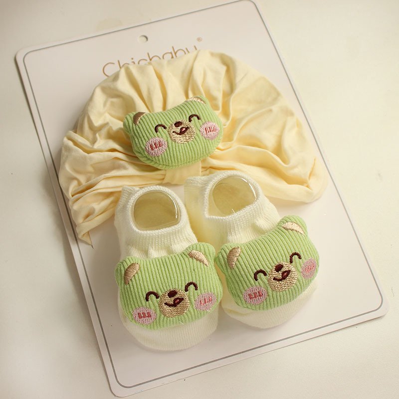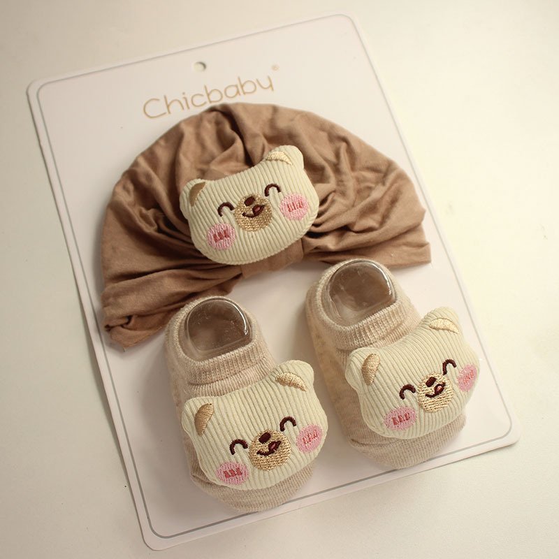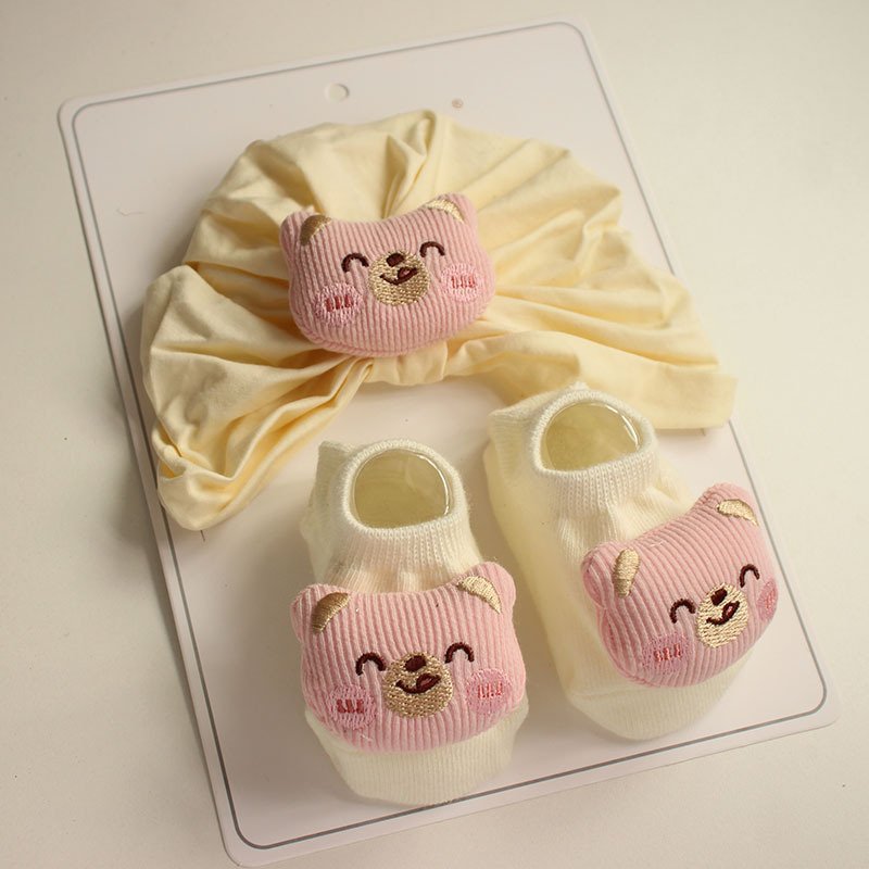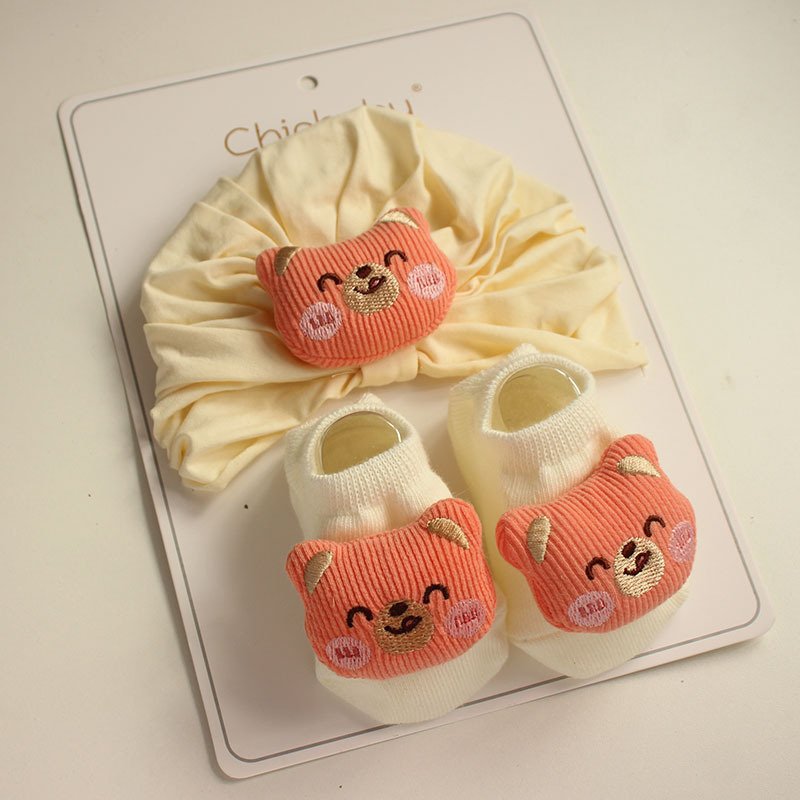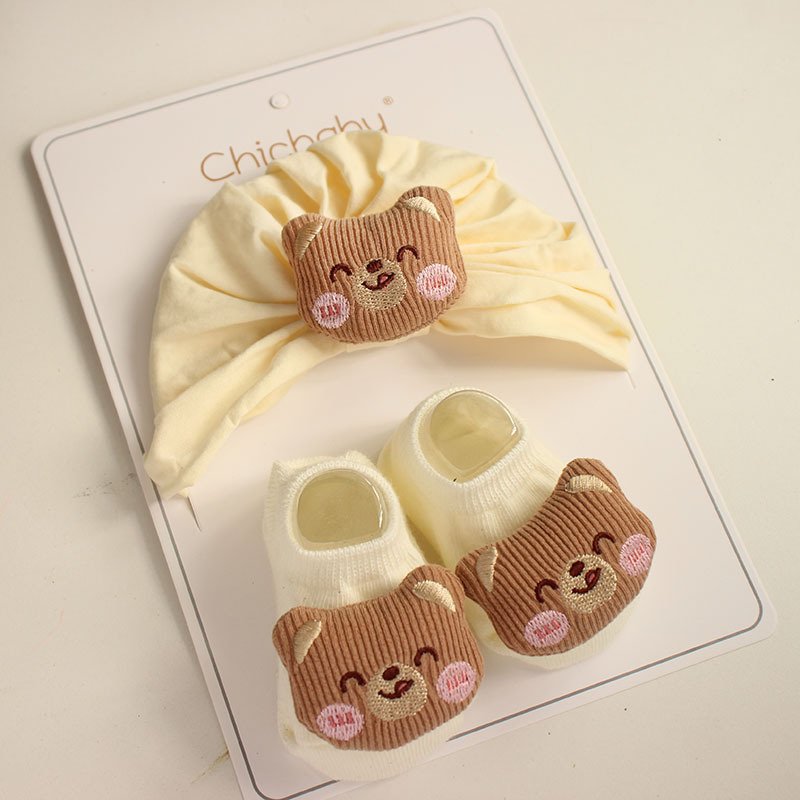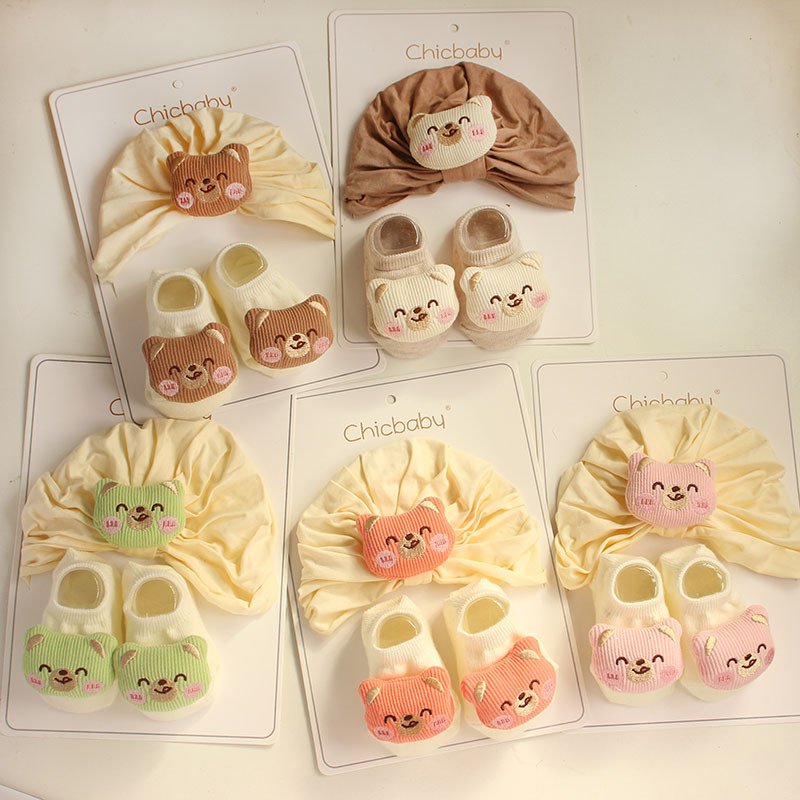 Newborn Casual Cute Cartoon Bear Hat Socks Set