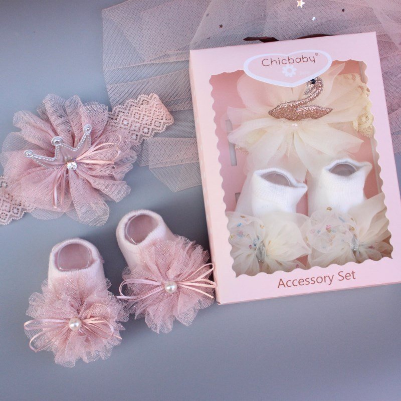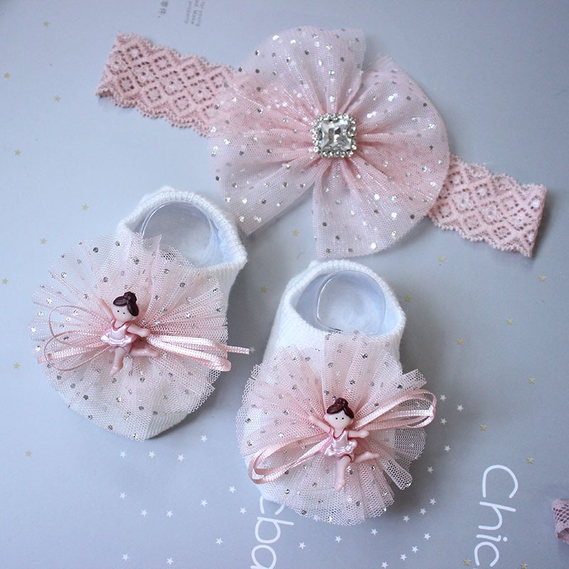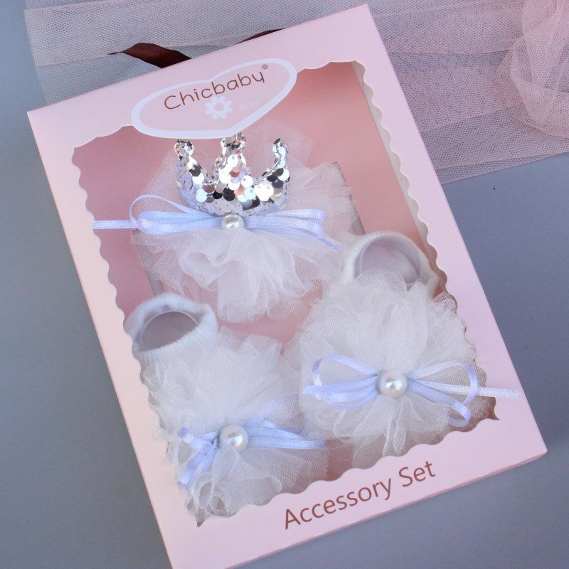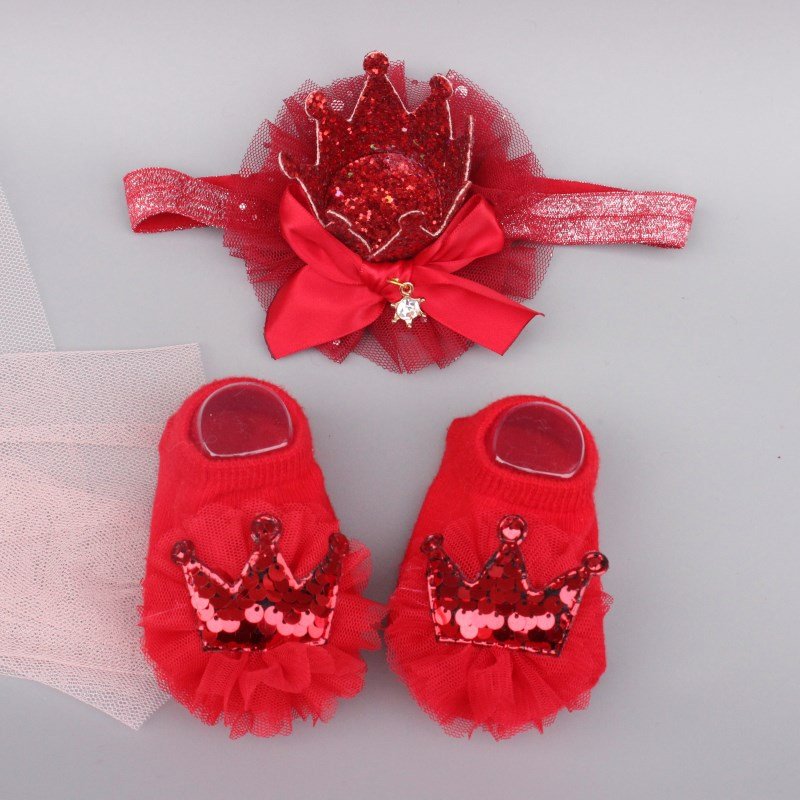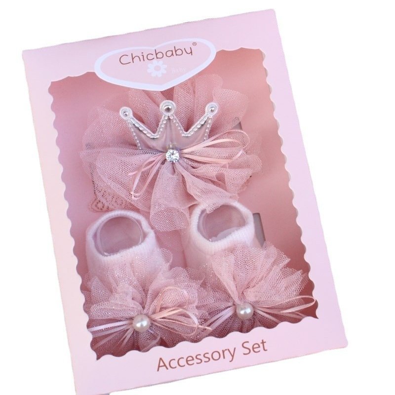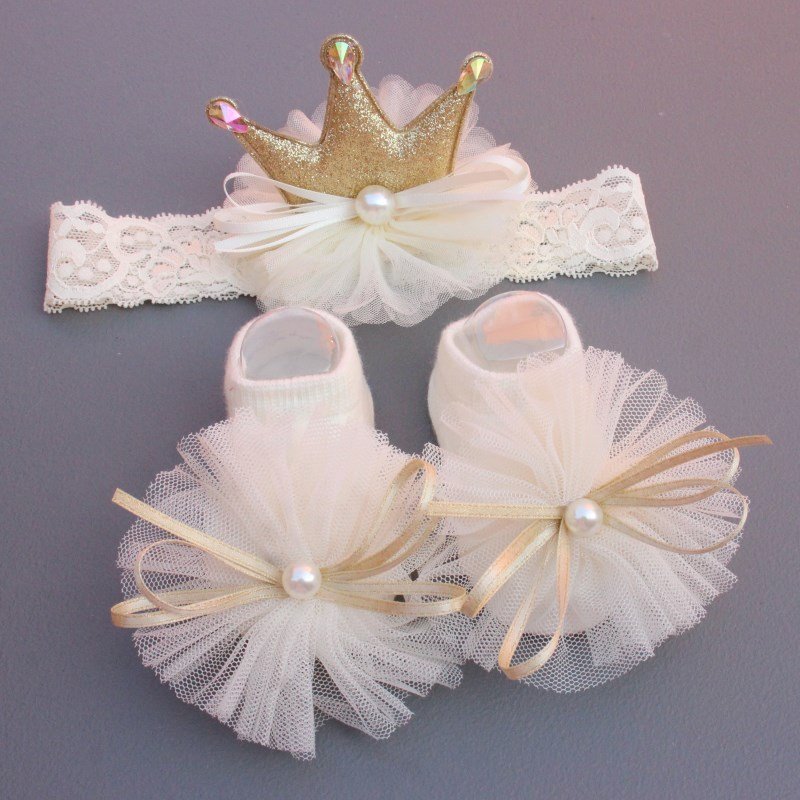 Newborn Casual Cute Crown Bow Hair Band And Socks Set