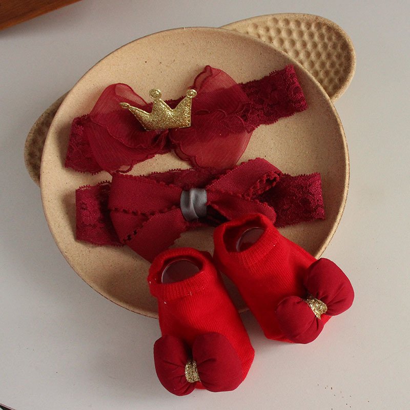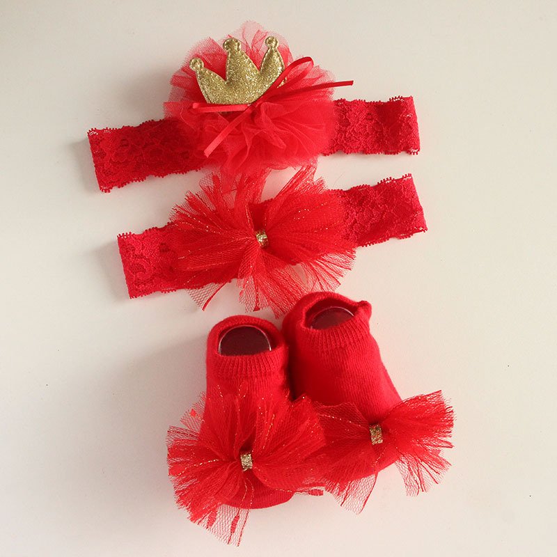 • 4653 (Gold Red) / Crown Hairband / Small Socks – One Size