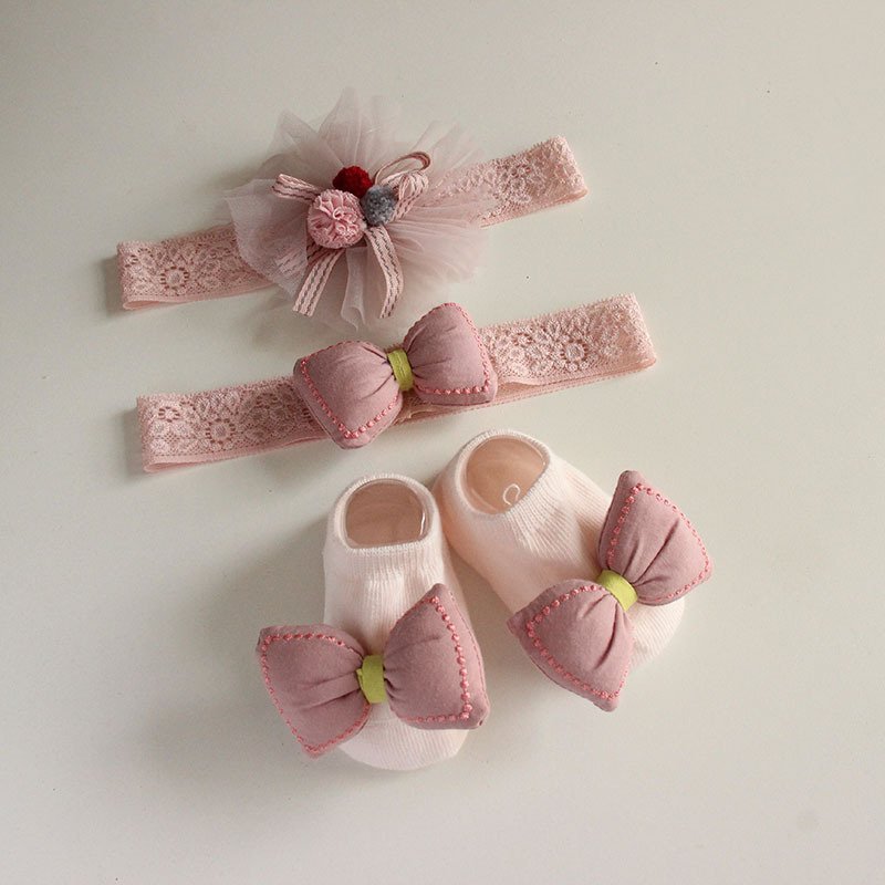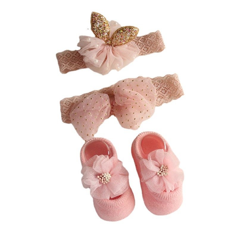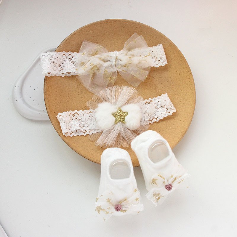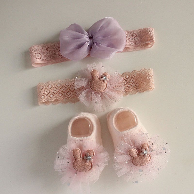 • 4665 (Powder Gauze) / Flower Hair Band / Small Socks – One Size