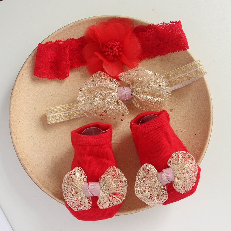 • 4656 (Red Sequin Bow) / Headband / Small Socks – One Size