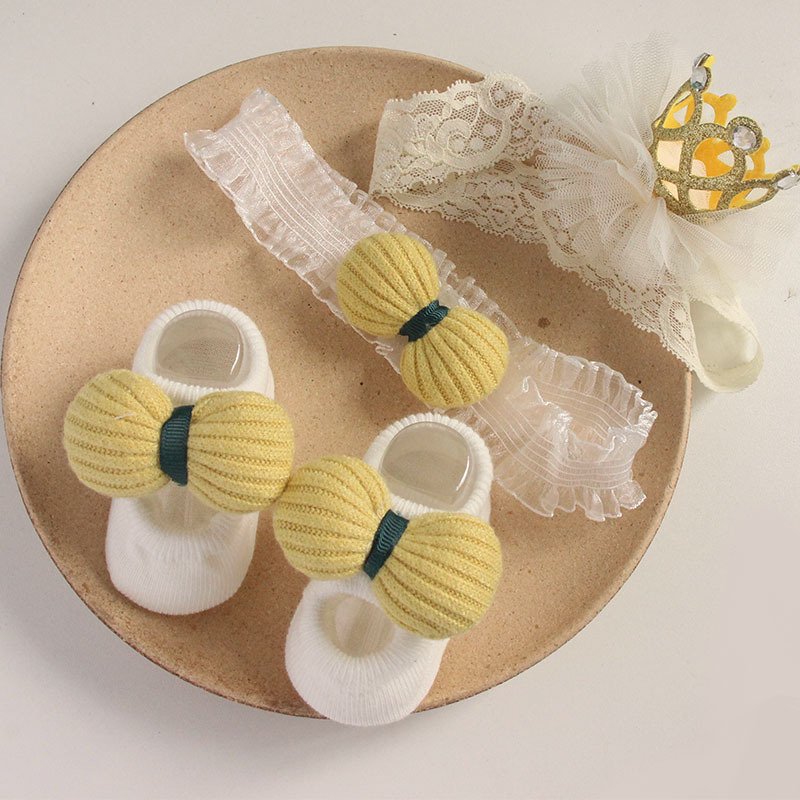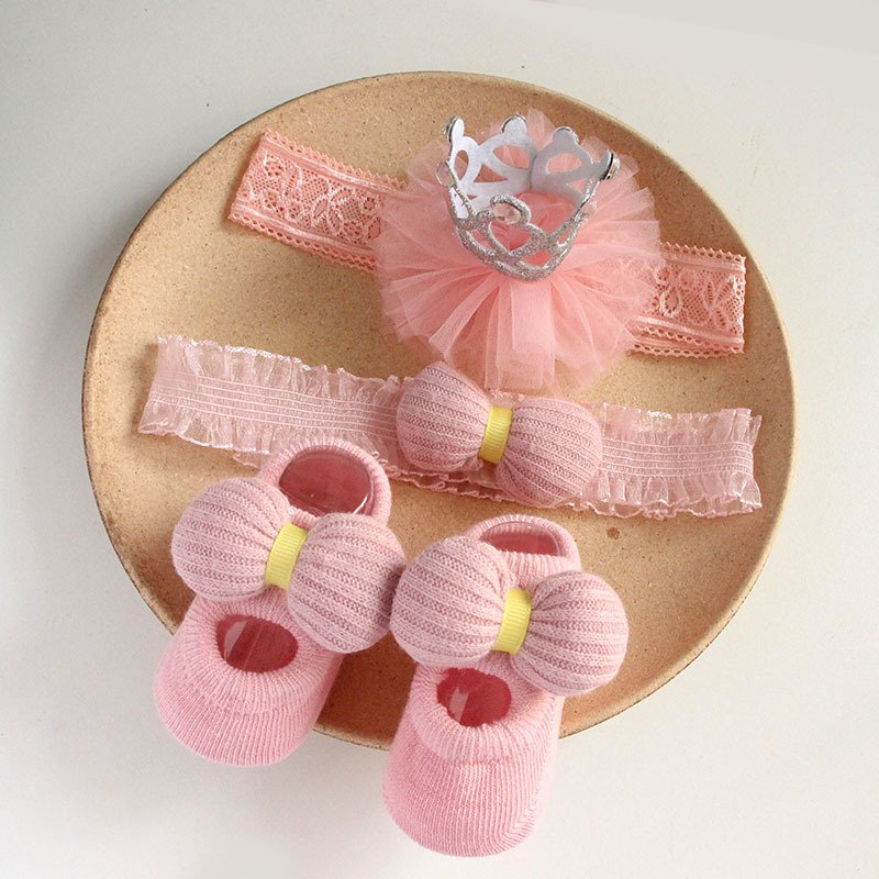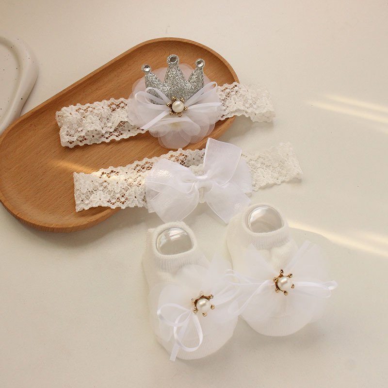 Newborn Casual Cute Crown Bow Hair Band And Socks Set