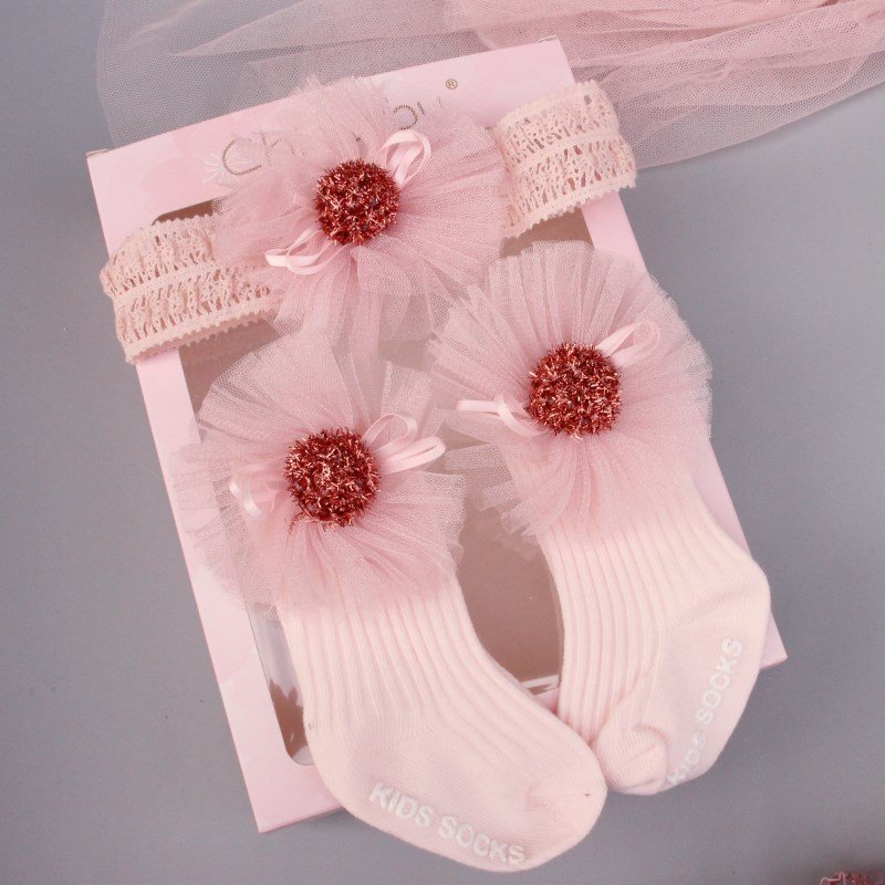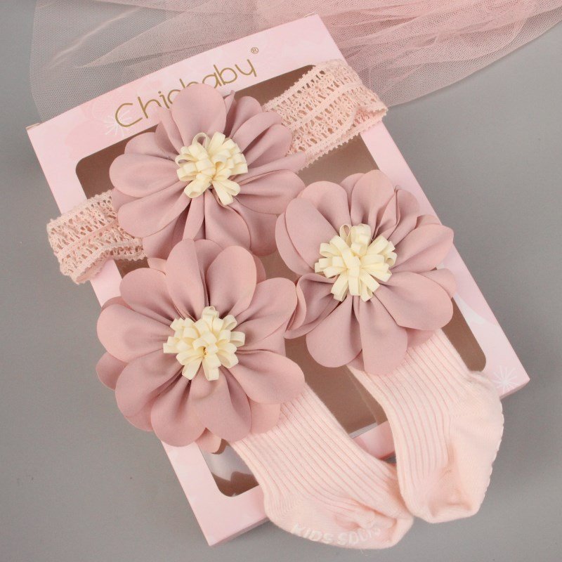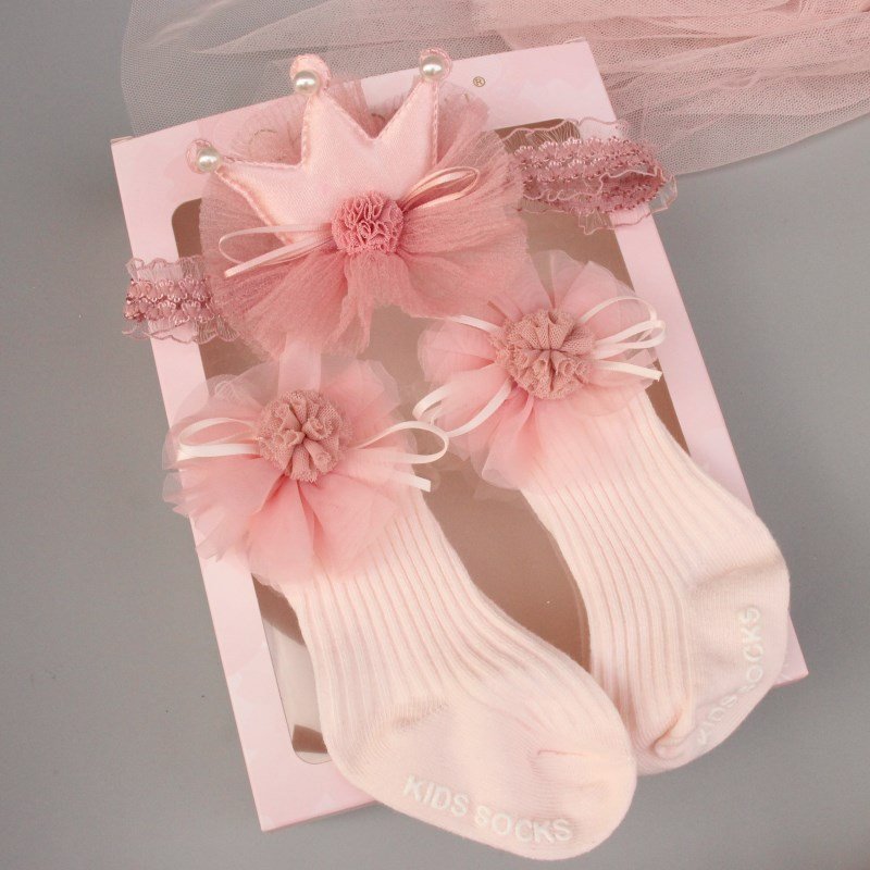 Newborn Casual Cute Flower Crown Bow Lion Hat Socks Set