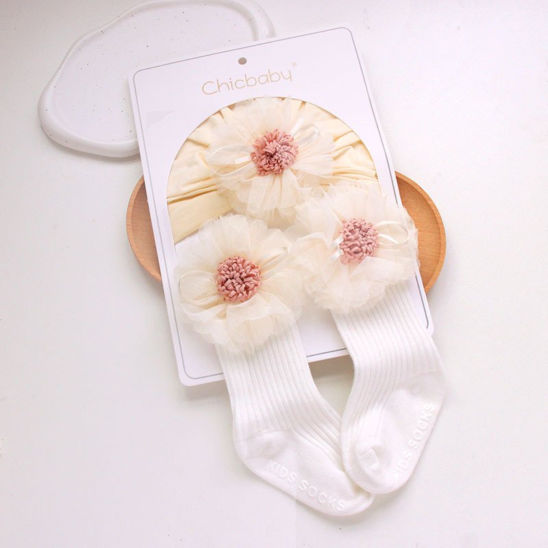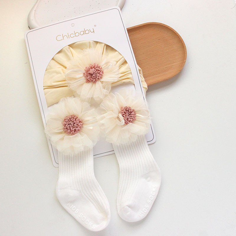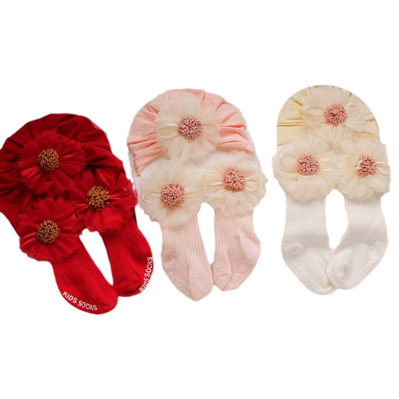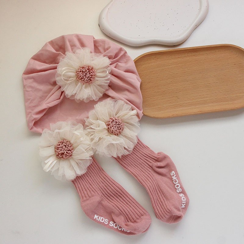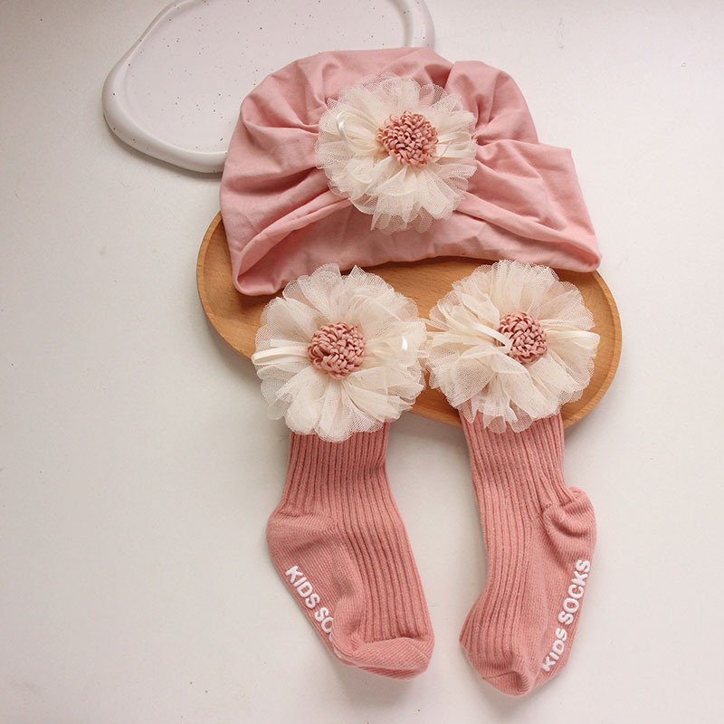 • 56 Powder Rice Gauze Flower Hat Stockings – One Size