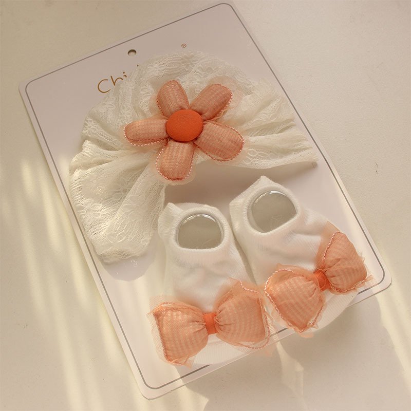 • Orange Gauze White Fine Lines Lace Hat Socks – One Size