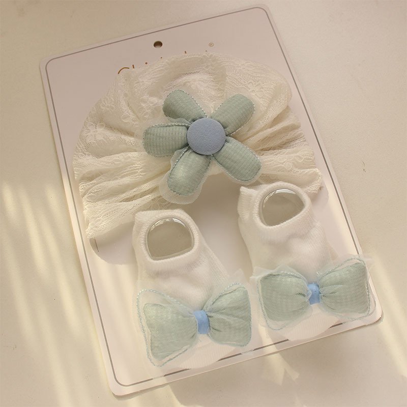 • Blue Gauze White Fine Lines Lace Hat Socks – One Size