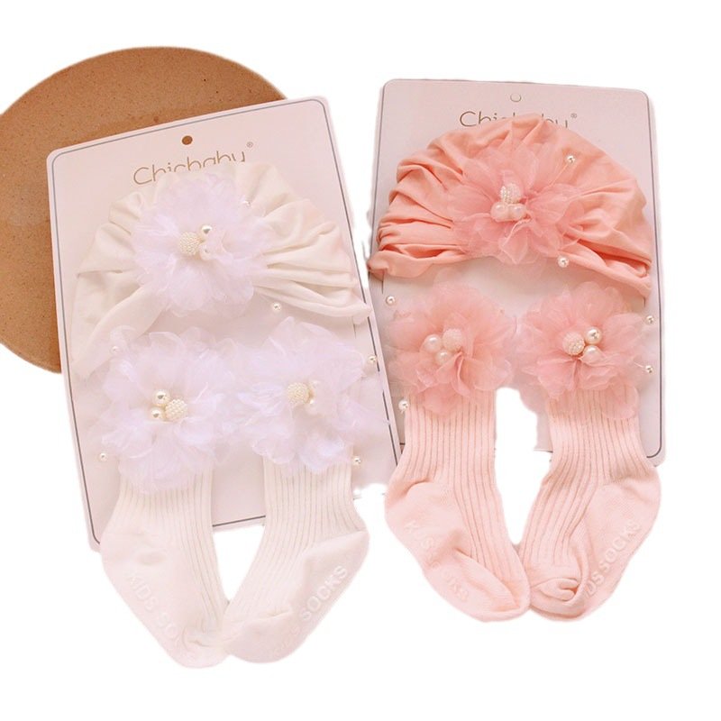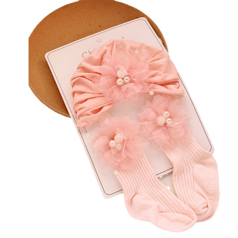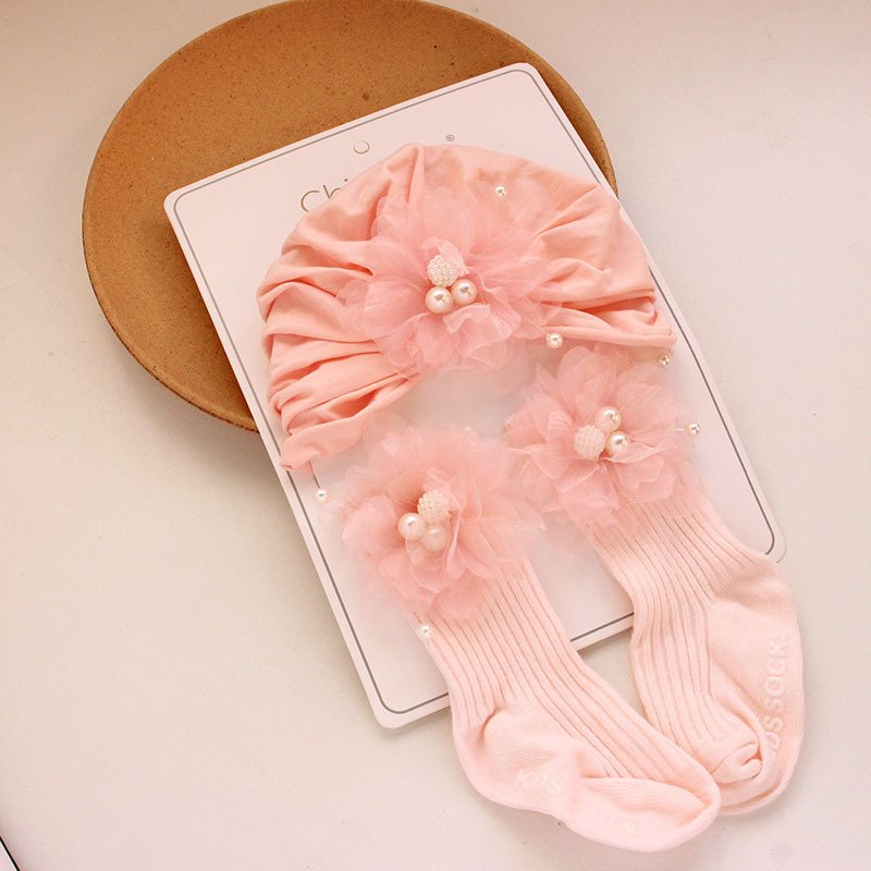- 24 Powder Three Beads Flower Hat Stockings – One Size