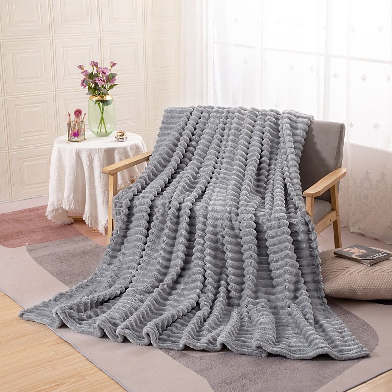• Rabbit Hair Wide Strip D. Grey – 100x110CM Naked Blanket