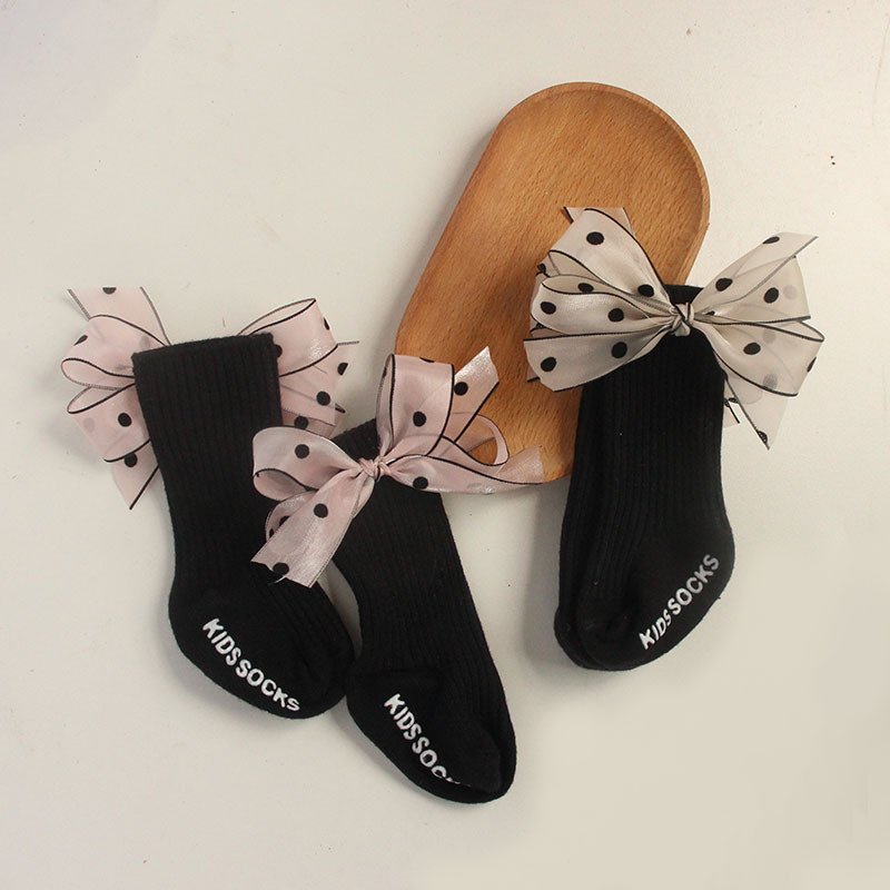 - Black White Dot Cap Mid – Length Socks – One Size