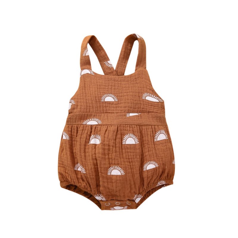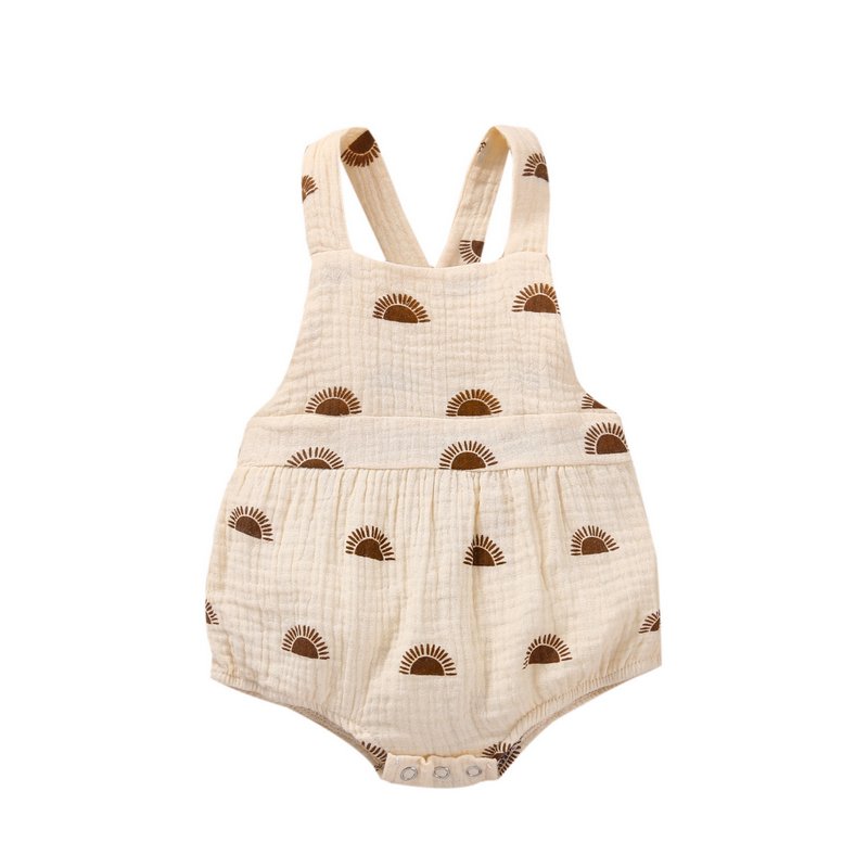 Newborn Kids Boys Girls Sun Print Cotton Linen Suspender Bodysuit