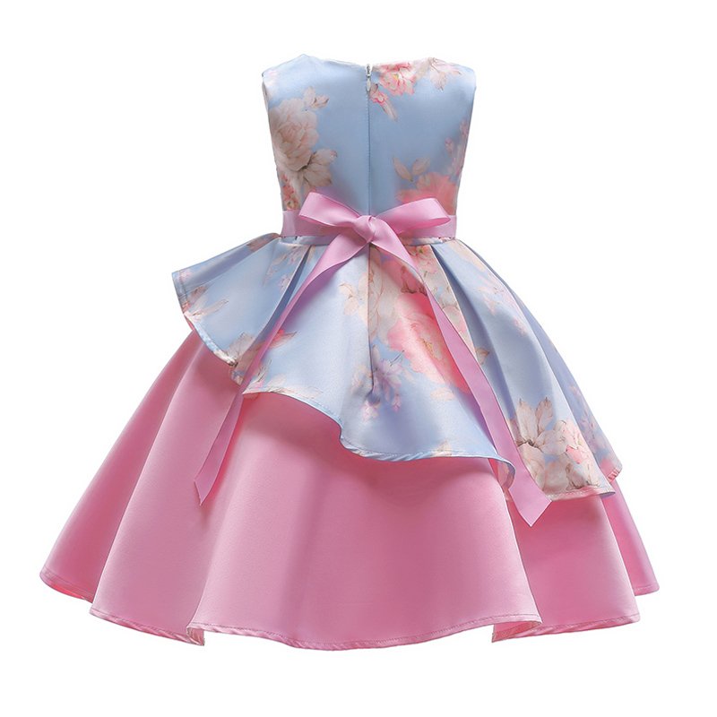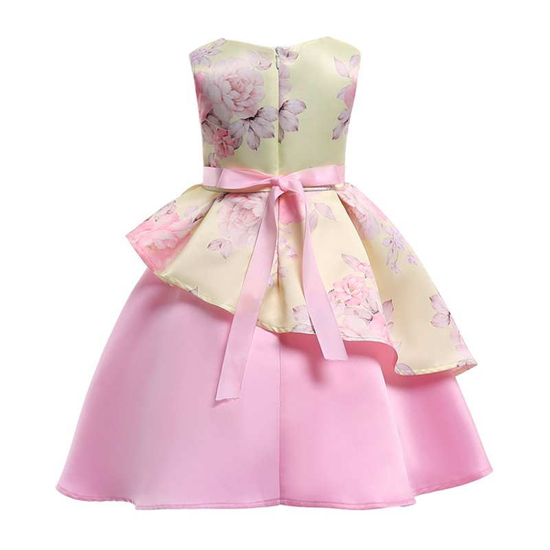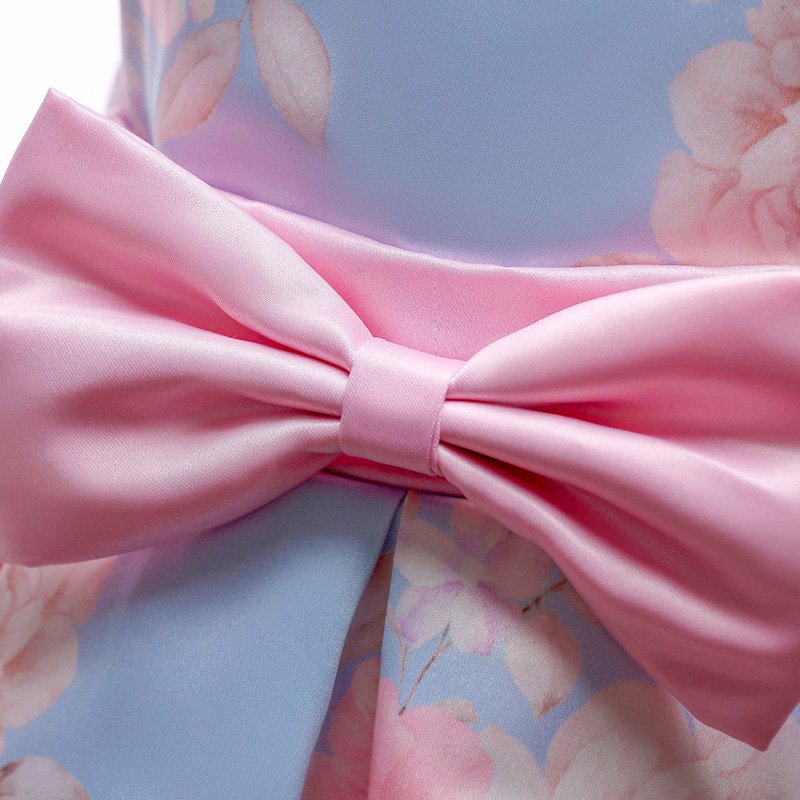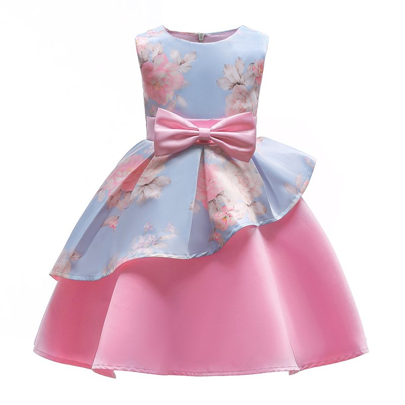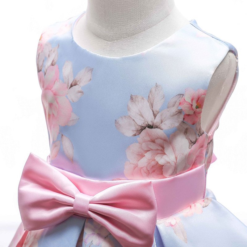 Nice Girl Stylish New Lovely Irregular Print Fancy Dress Design Cotton Bowknot Decoration Flower Pattern Sleeveless Party Dress
