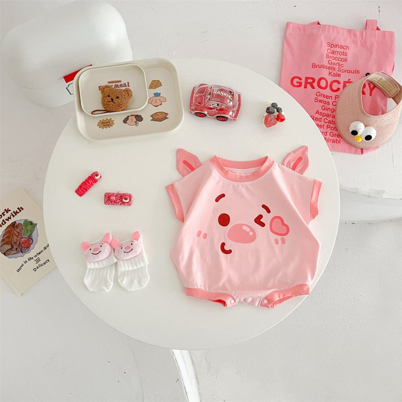 Pink Little Pig Cute Cartoon Summer Baby Clothes Rompers