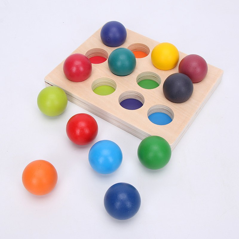 Rainbow Toys Children’s Building Blocks 12 Balls Early Education Board Color Cognitive Matching