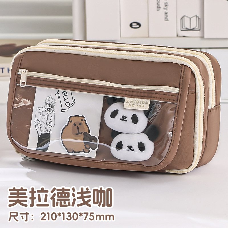 Simple Neutral Cartoon Cute Transparent Large Capacity Zipper Pencil Bag