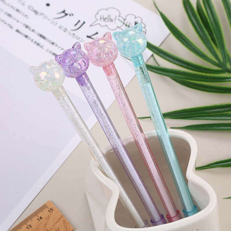 Student Creative Stationery Cartoon Crystal Pig Colorful Transparent Rod Gel Pen