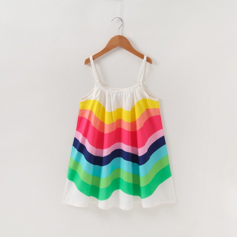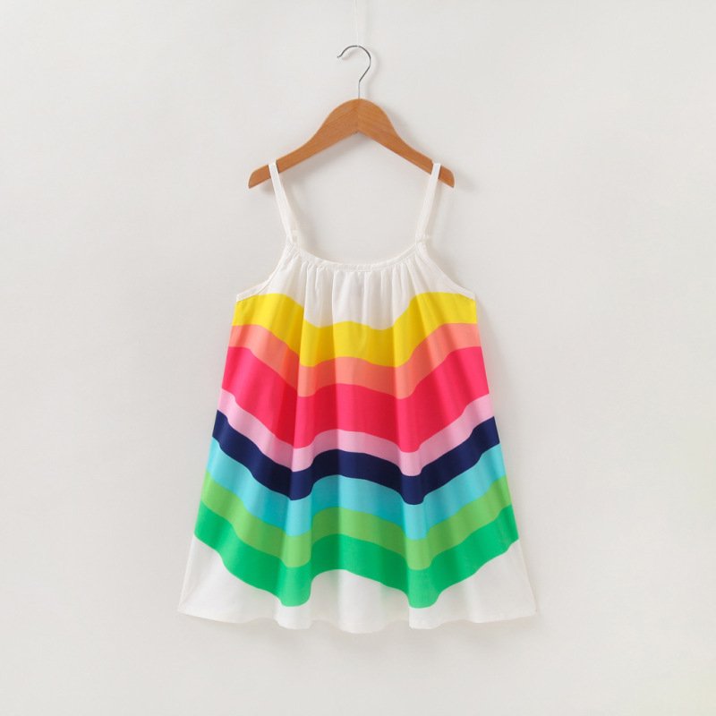 Summer Fashion Vacation Chiffon Beach Rainbow Print Sleeveless Sling Dress