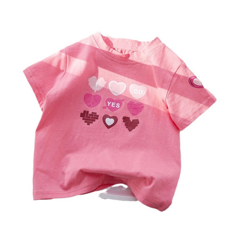 Summer Girls Heart-Shaped Short-Sleeved Cotton T-Shirt