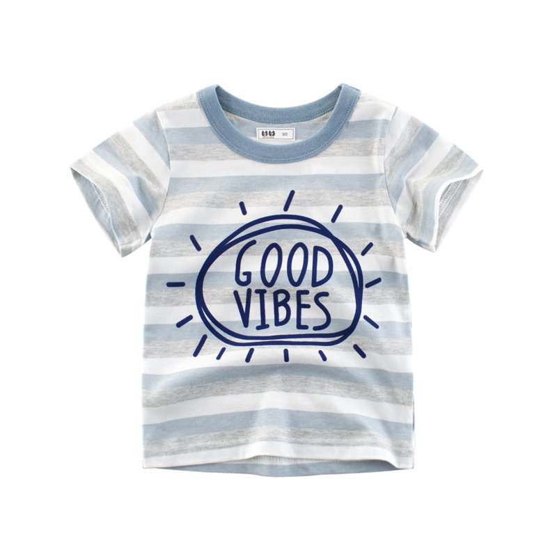 Summer Kids Blue And White Striped Sun Pattern Short Sleeve T-Shirt