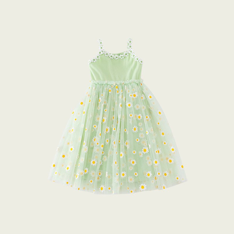 Summer Kids Toddler Girls Daisy Floral Gauze Suspender Dress