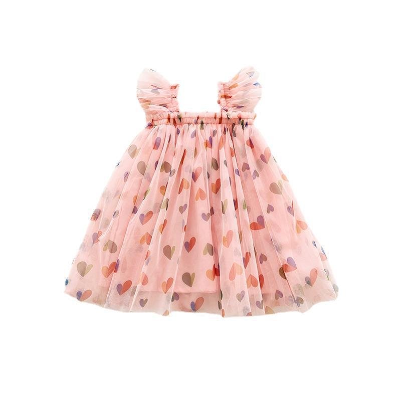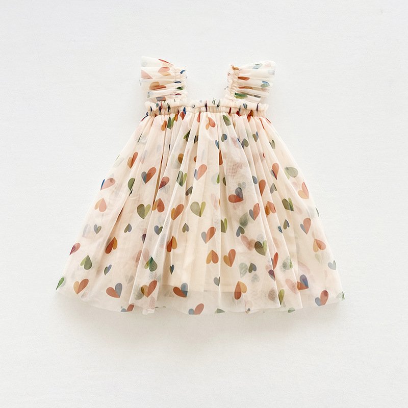 Summer Kids Toddler Girls Heart-Shaped Mesh Print Dress