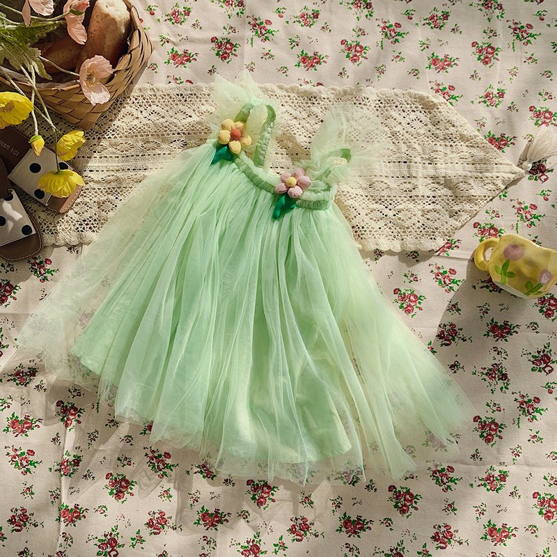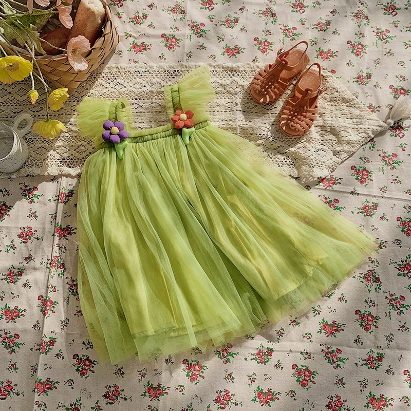 Summer Kids Toddler Girls Three-Dimensional Floral Mesh Dress