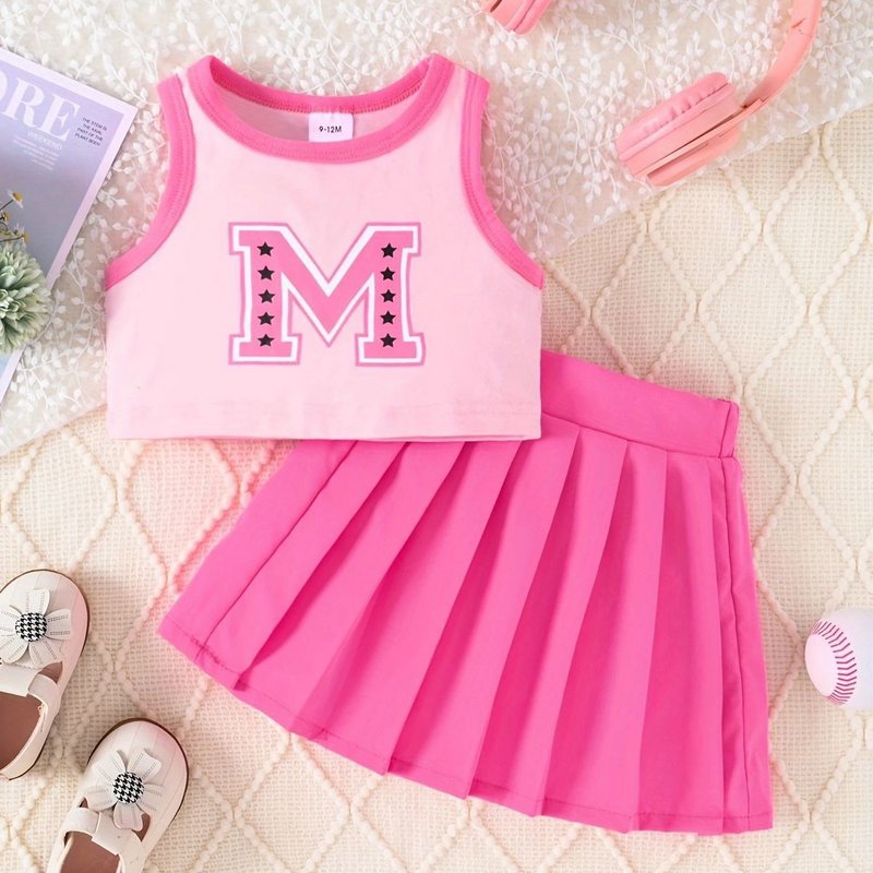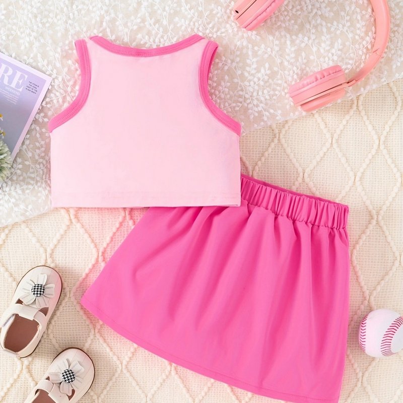 Summer Toddler Girls Casual Pink Sleeveless Tank Top Pleated Skirt Two-Piece Set