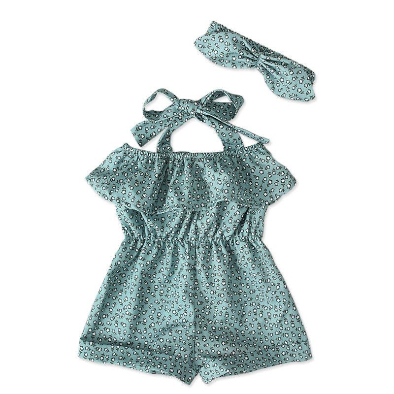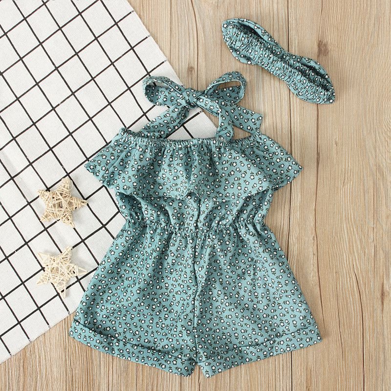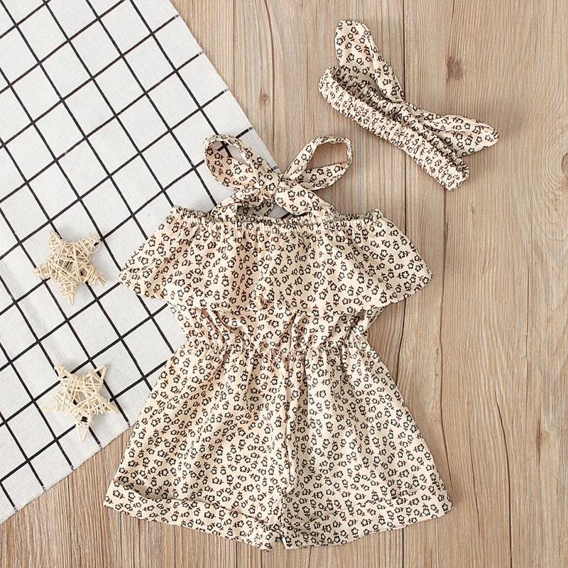 Sweet Girl Print Sleeveless Rompers And Headband 2 Pcs