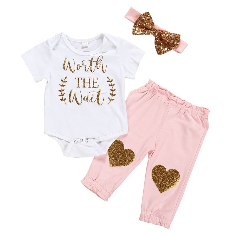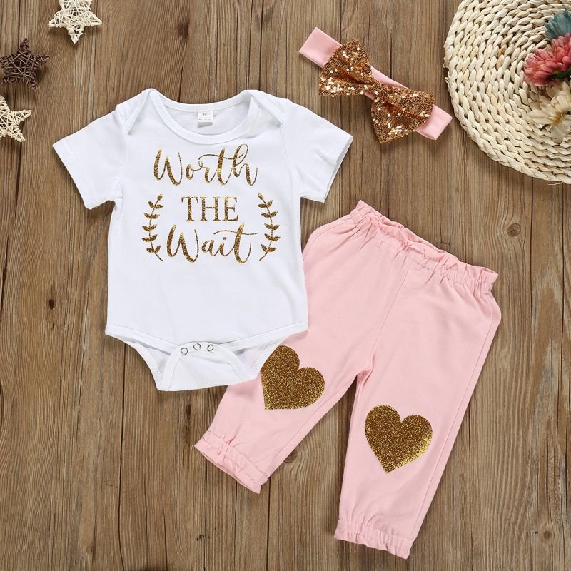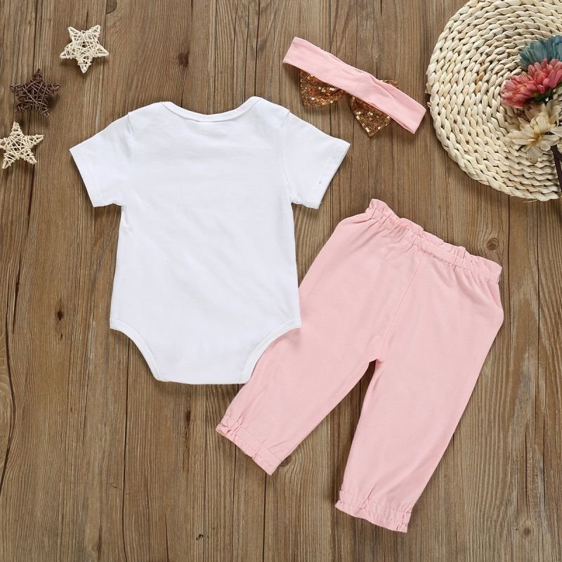 Sweet Style Baby Girl Letter Print Bodysuit And Pants With Headband