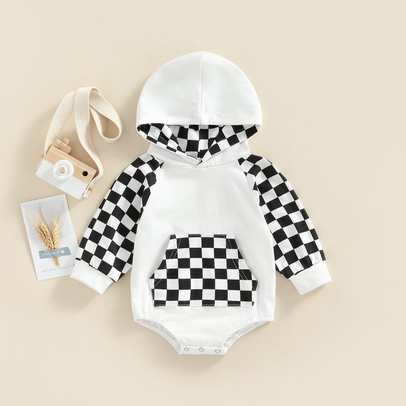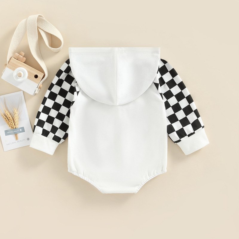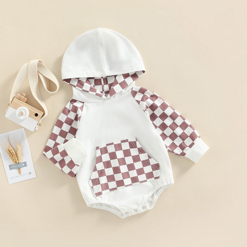 Toddler Baby Infant Girls Boys Long-Sleeved Plaid Print Hooded Boysuit