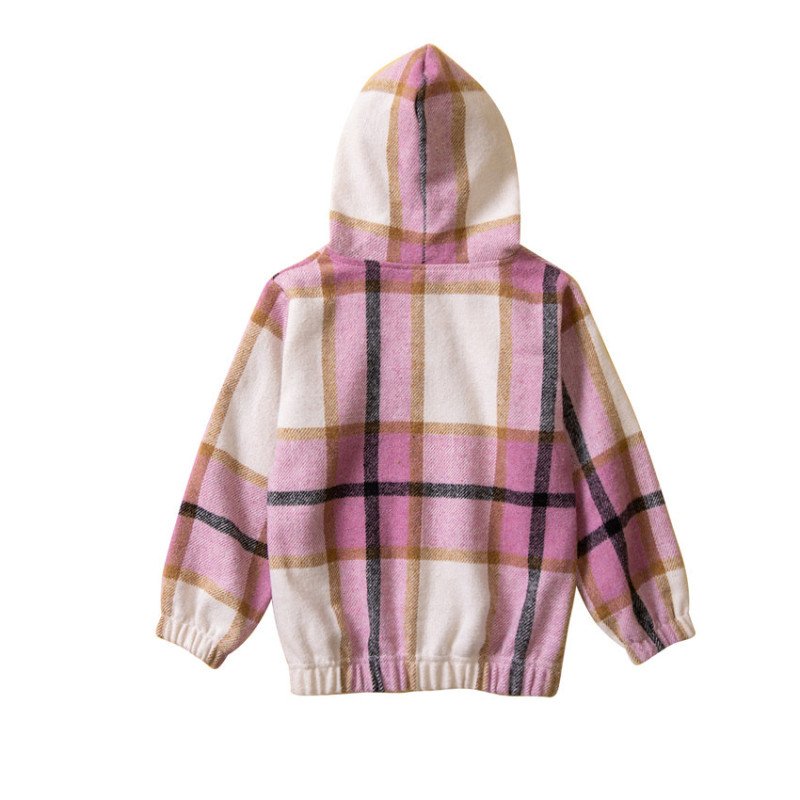 Toddler Baby Infant Girls Plaid Contrast Color Casual Hoodies