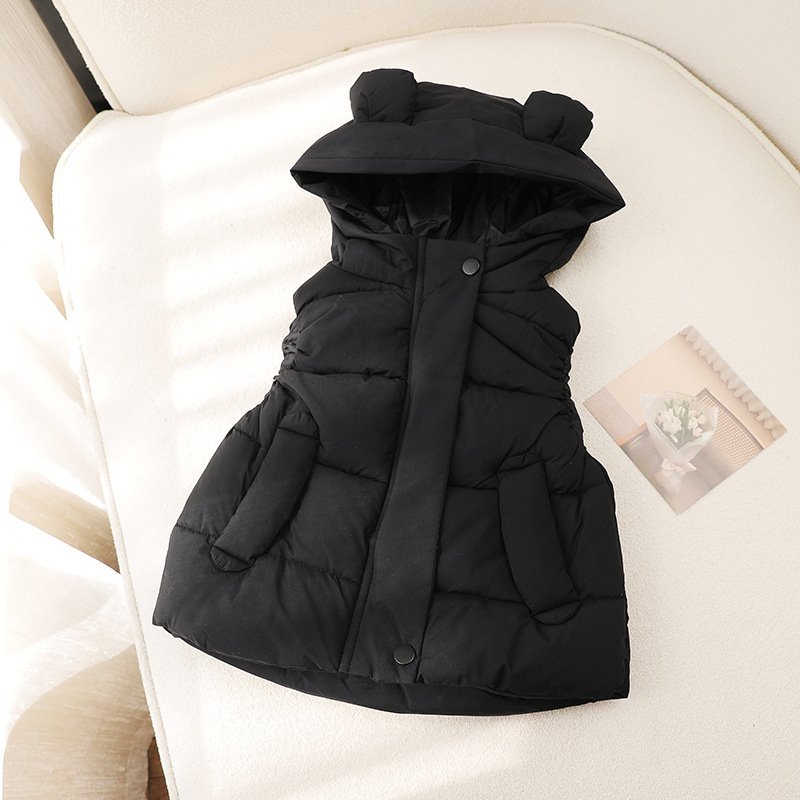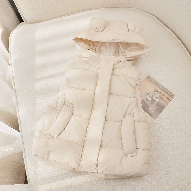 Toddler Girls Candy Color Sleeveless Hooded Quilted Down Coat Vest