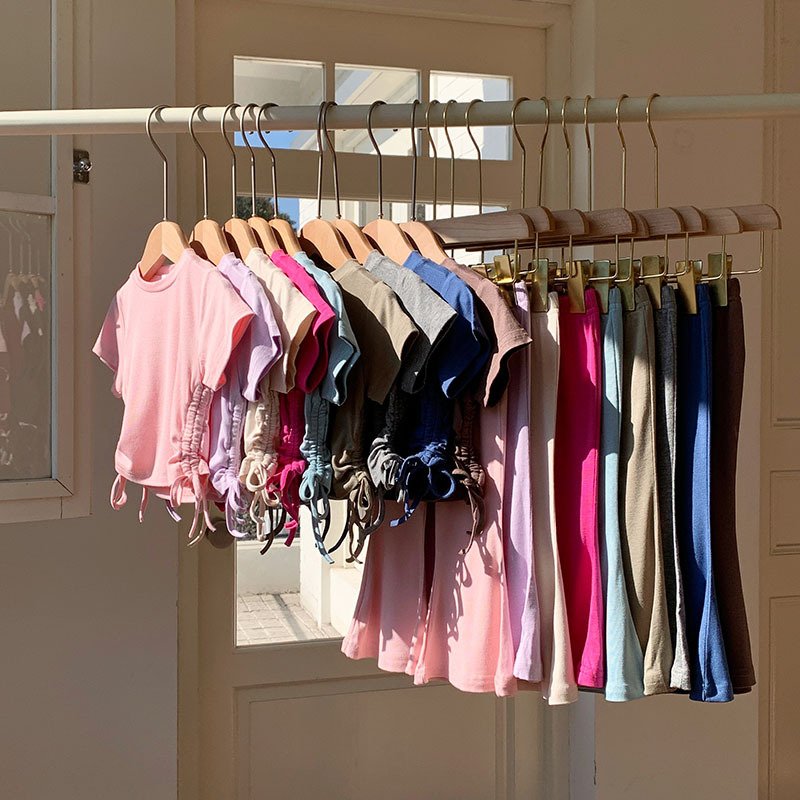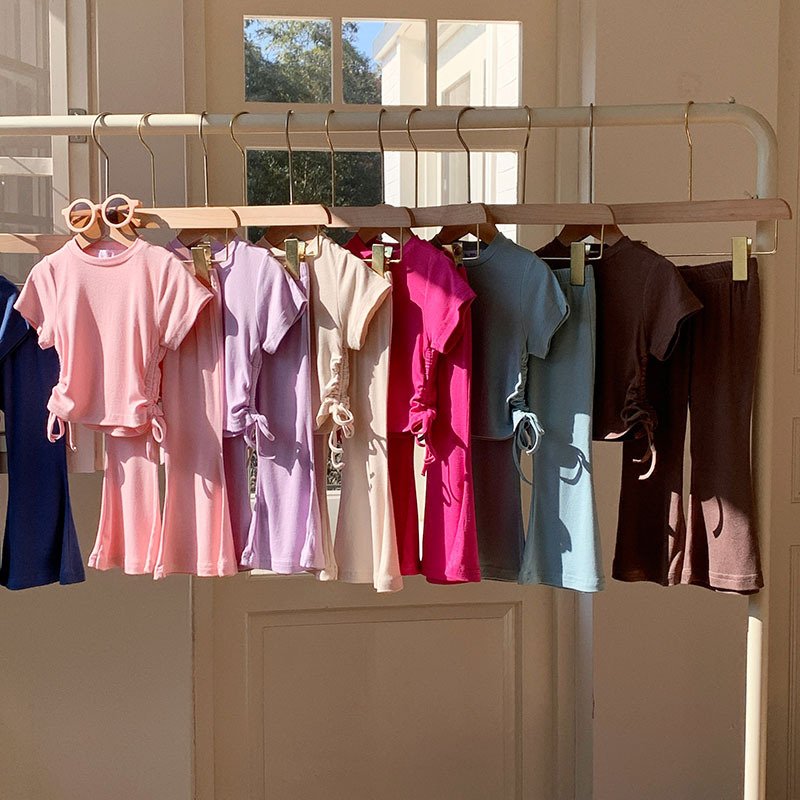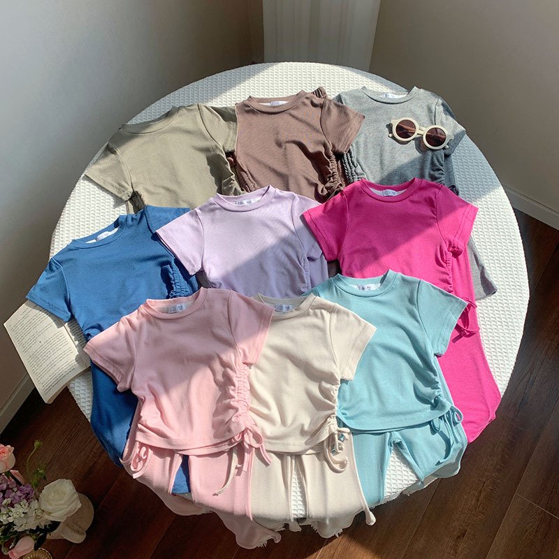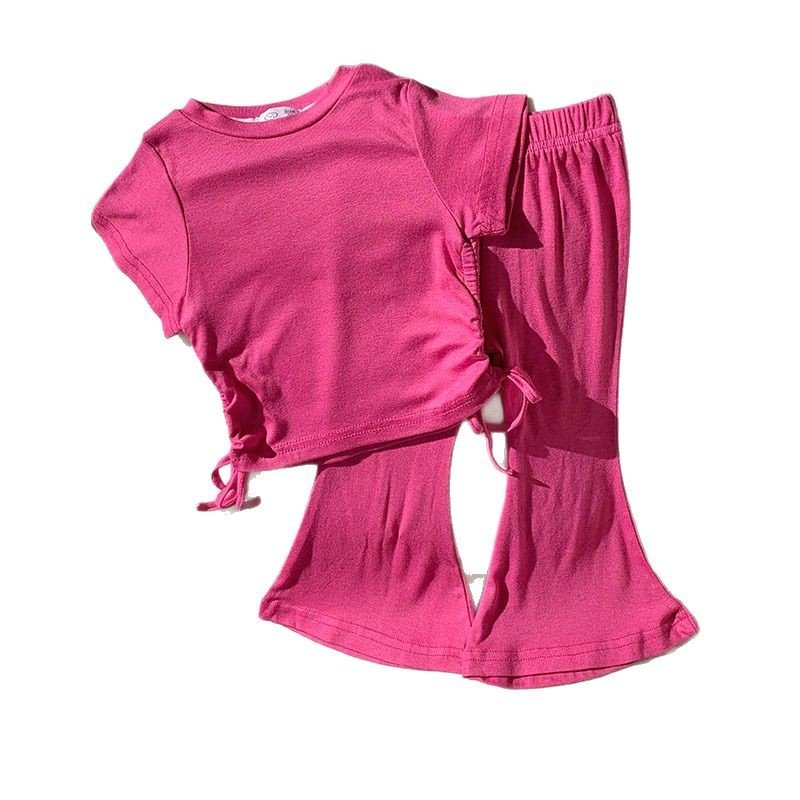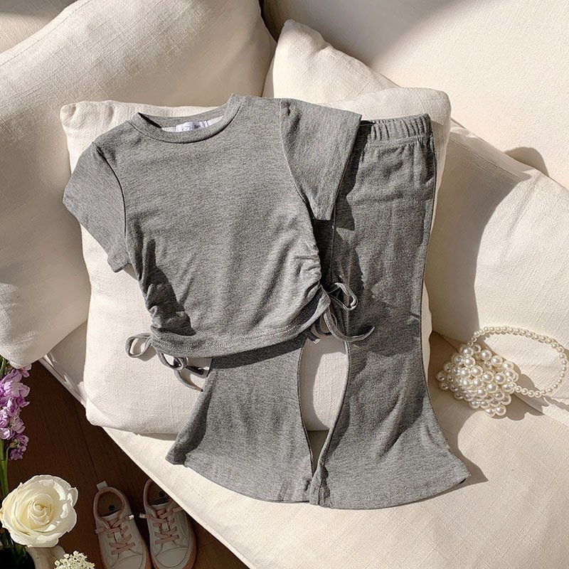 Toddler Girls Solid Color Drawstring Short Sleeve Top Wide Leg Pants Set
