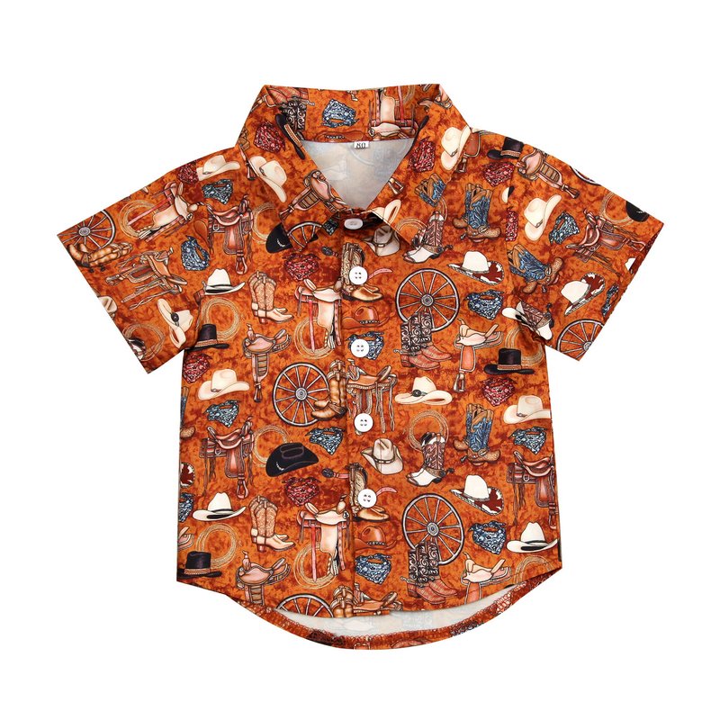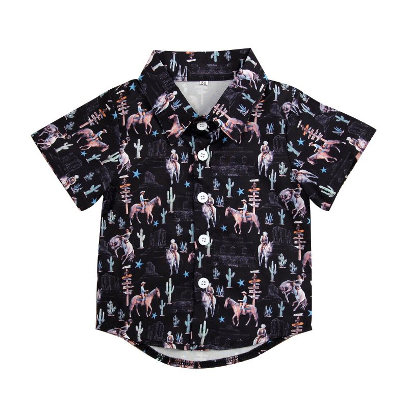 Toddler Kids Boy Fashion Beach Cartoon Short Sleeve Shirt