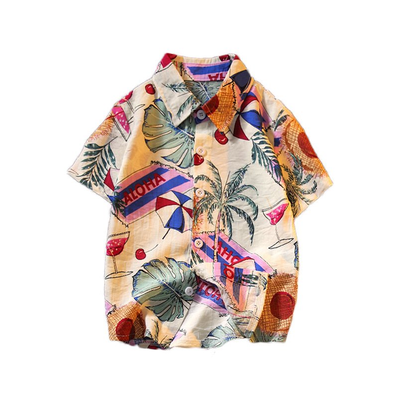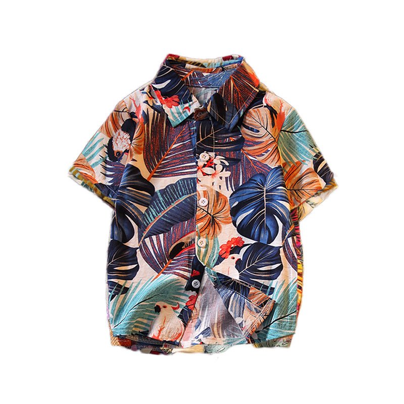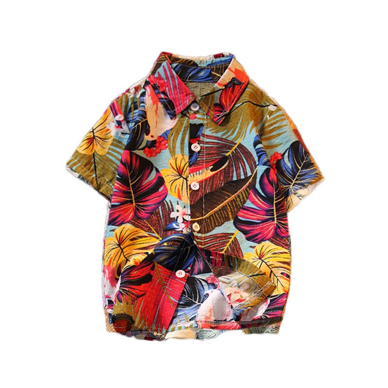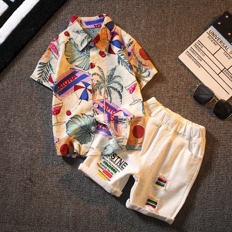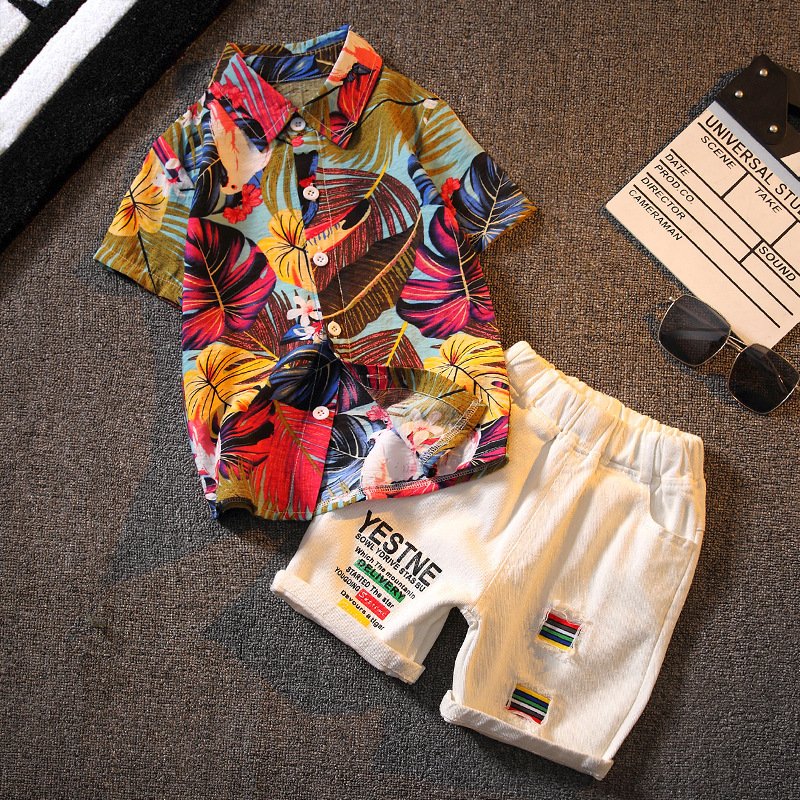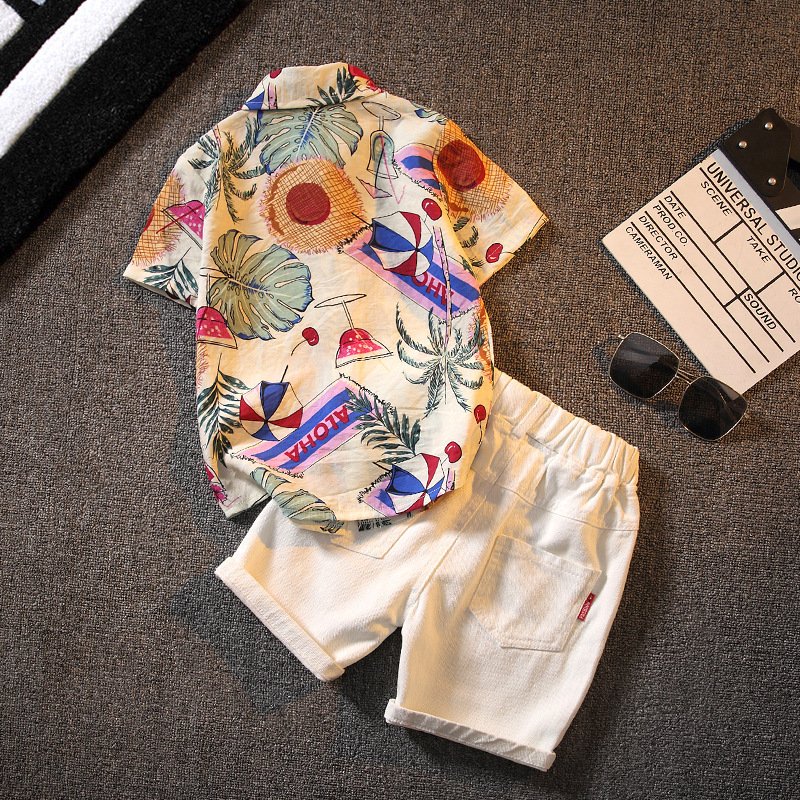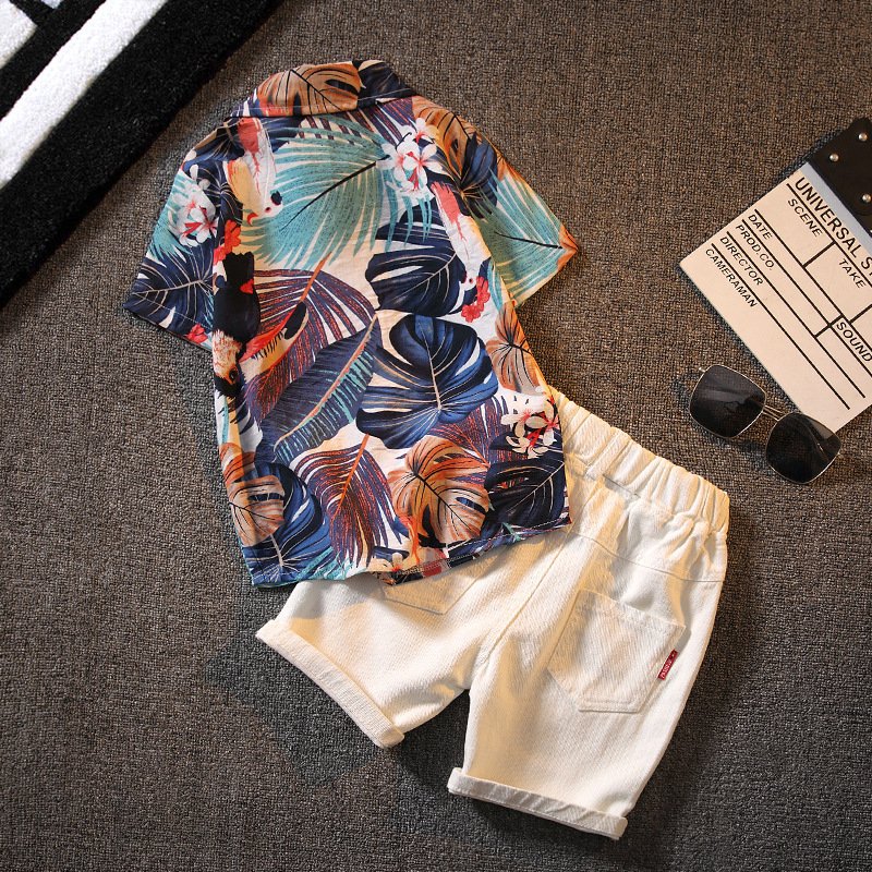 Toddler Kids Boy Fashion Maple Leaf Print Short Sleeve Shirt Shorts Set
