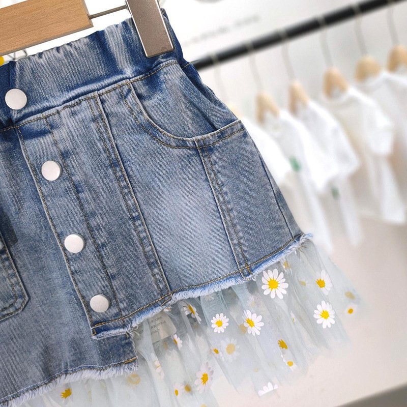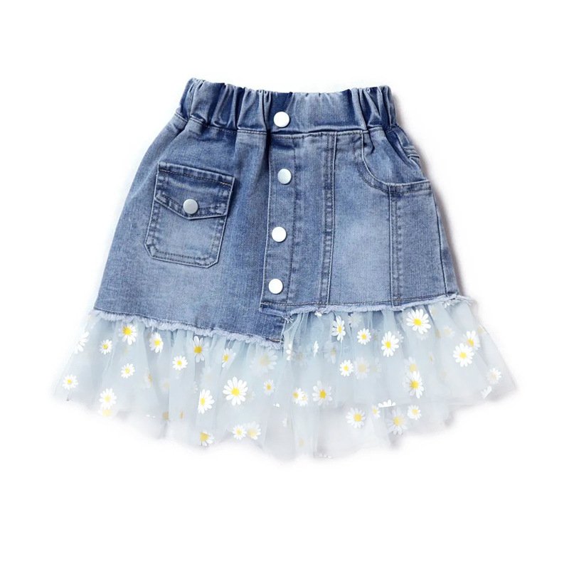 Toddler Kids Girl Fashion Daisy Mesh Skirt Summer Girl Denim Skirt