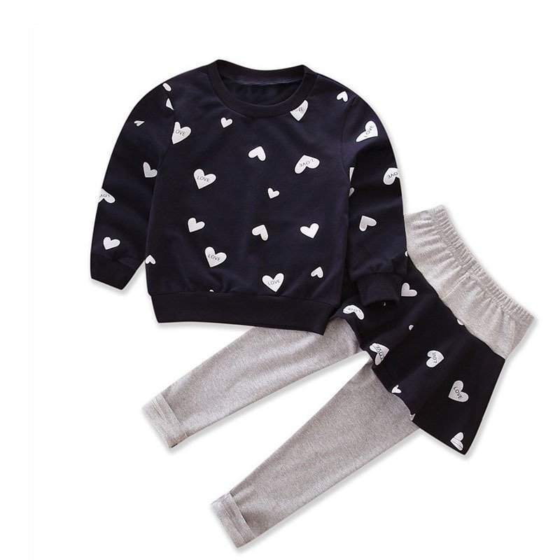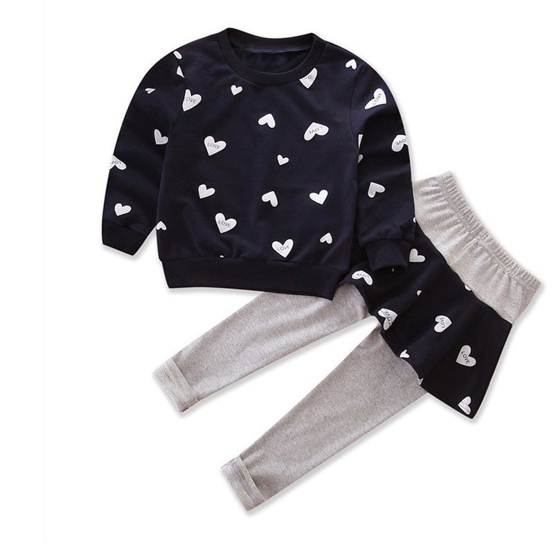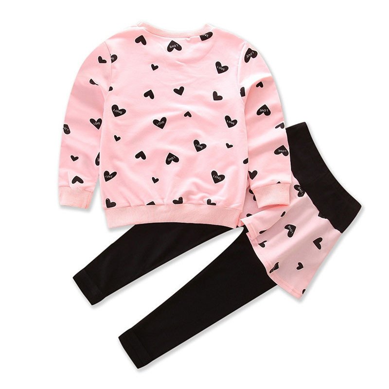 Toddler Kids Girl Fashion Heart Long Sleeve Top Bottoming Culottes Set