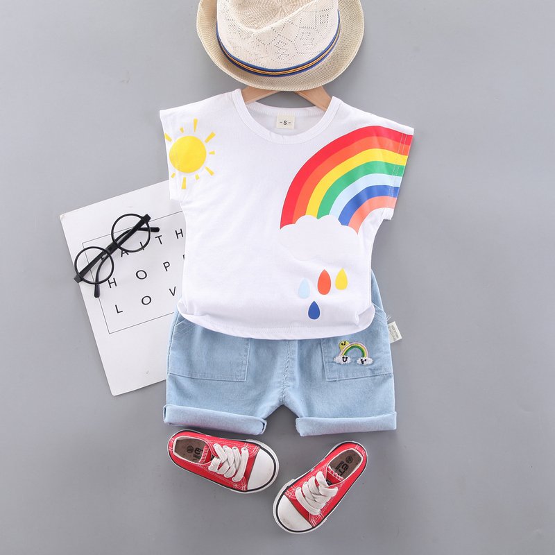 Toddlers Newborn Baby Boys Short-Sleeved Rainbow T-Shirt And Shorts 2pcs Set