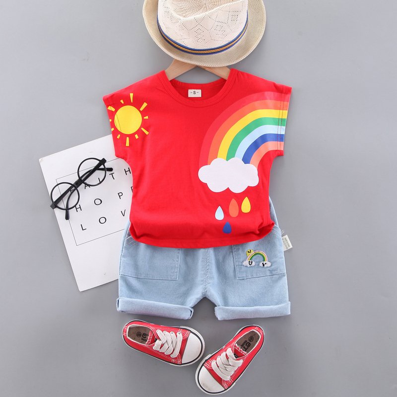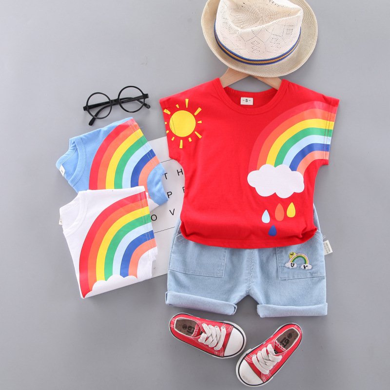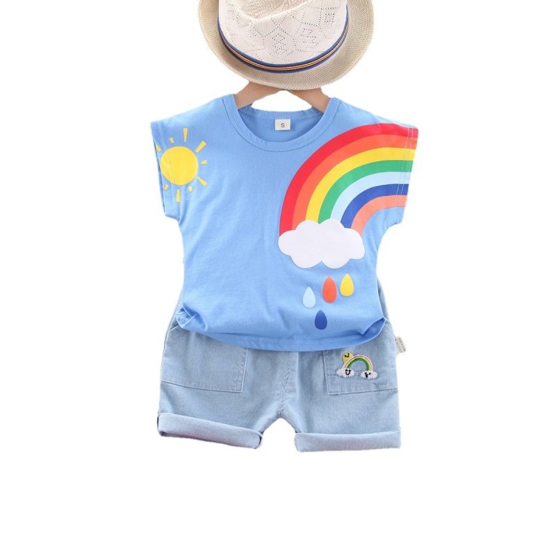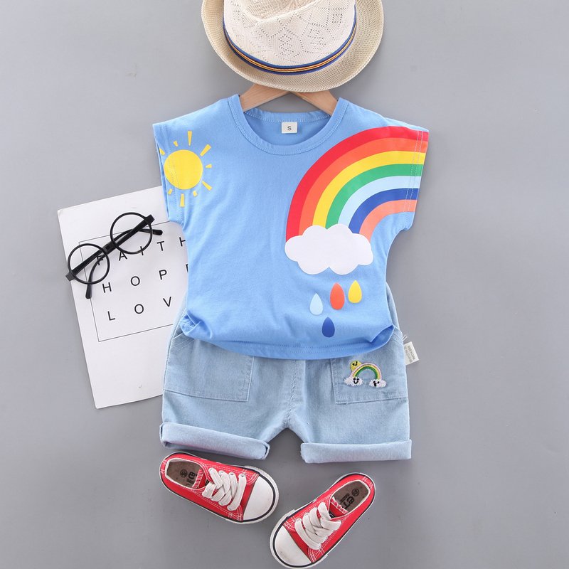 Toddlers Newborn Baby Boys Short-Sleeved Rainbow T-Shirt And Shorts 2pcs Set