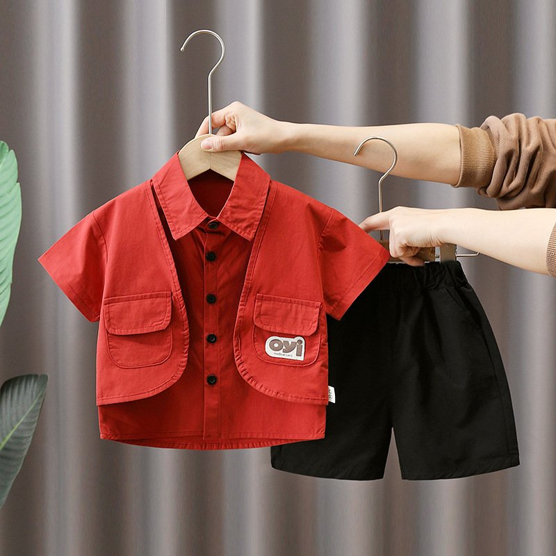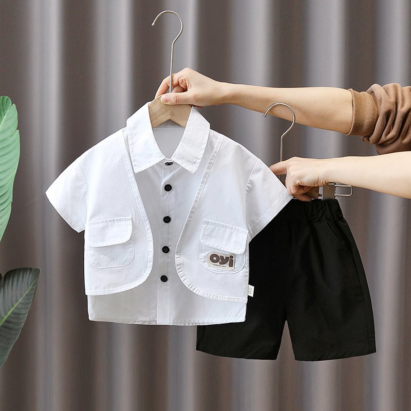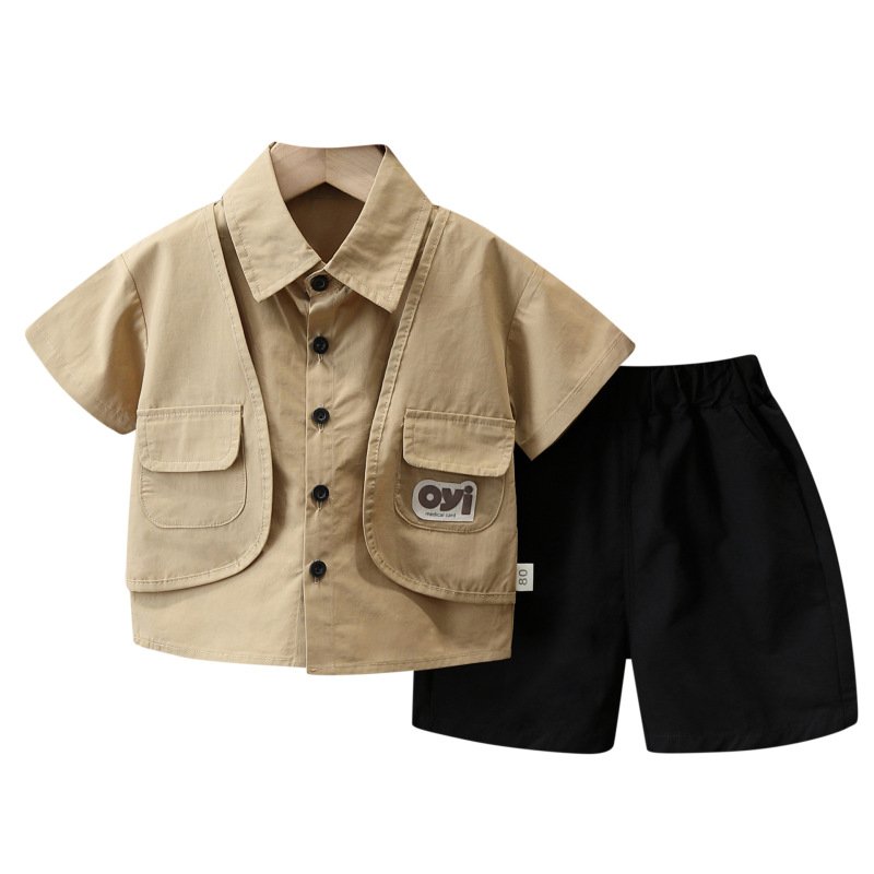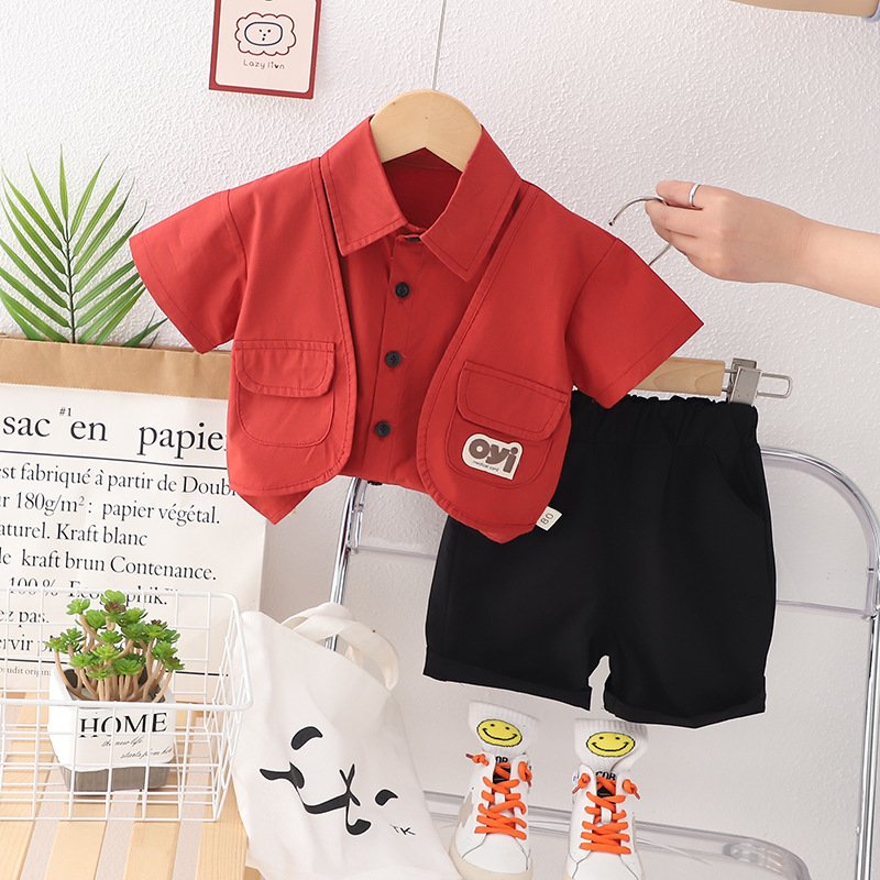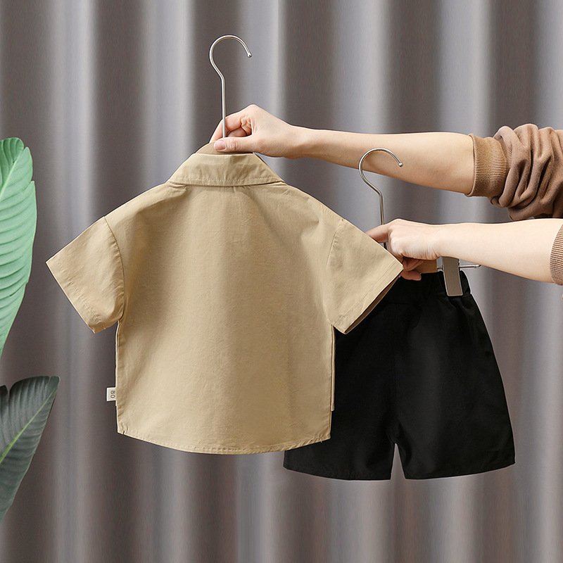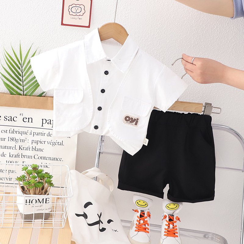Toddlers Newborn Baby Fashion Boys Casual Short Sleeve Pocket Lapel Shirt And Shorts 2pcs Set