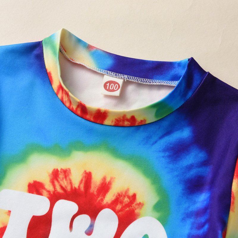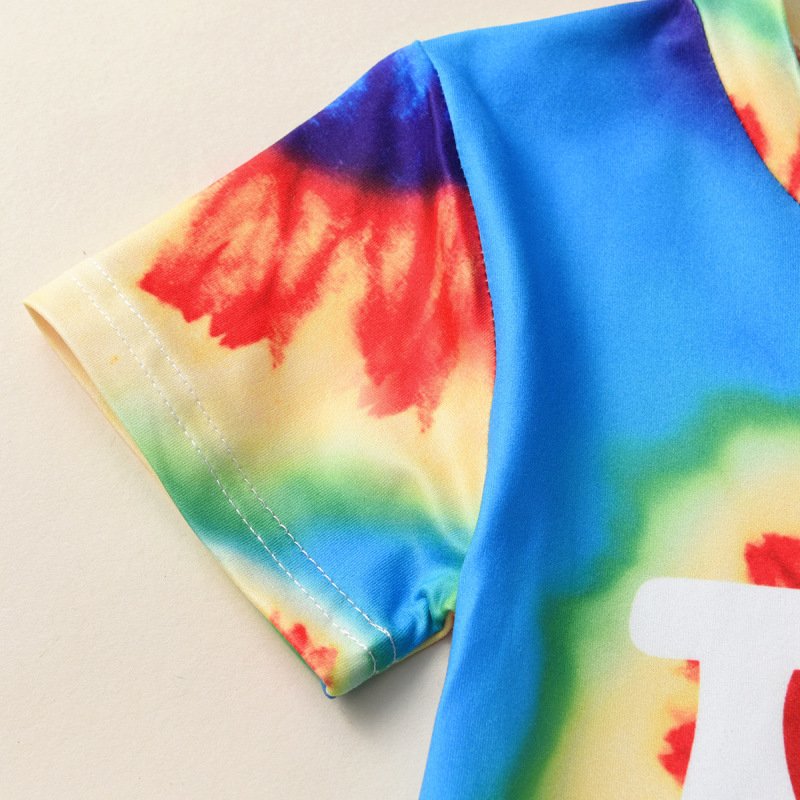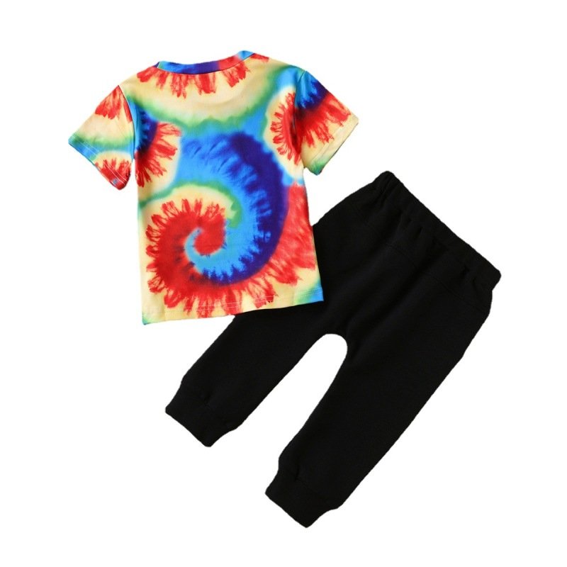 Toddlers Newborn Baby Fashion Boys Casual Short Sleeve Tie Dye Letter Print T-Shirt And Pants 2pcs Set