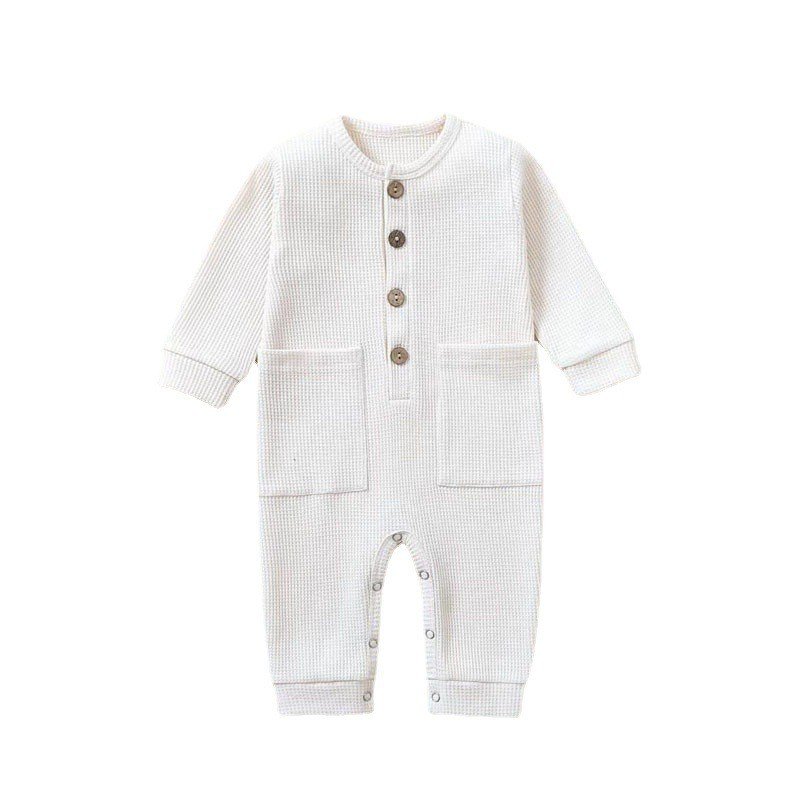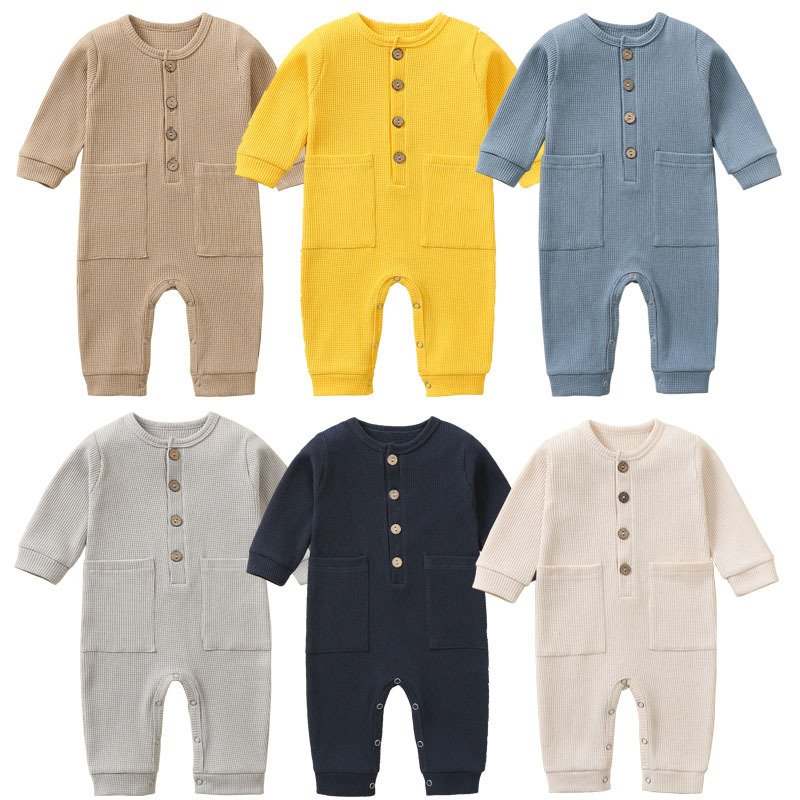 Toddlers Newborn Baby Fashion Boys Girls Casual Long Sleeve Solid Color Button Pocket Jumpsuit