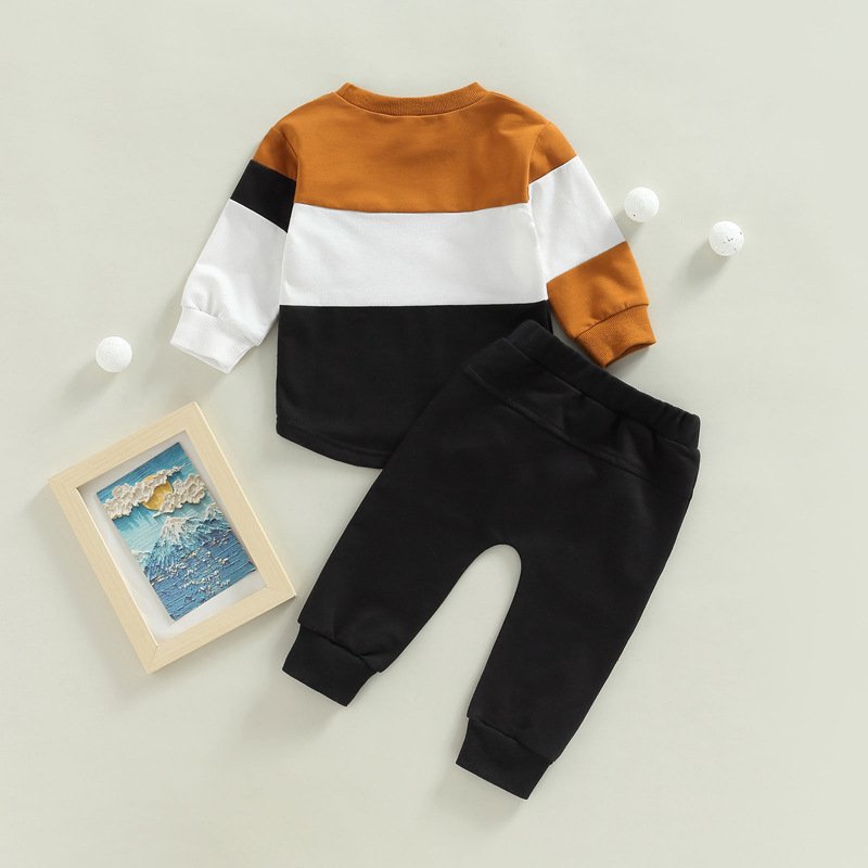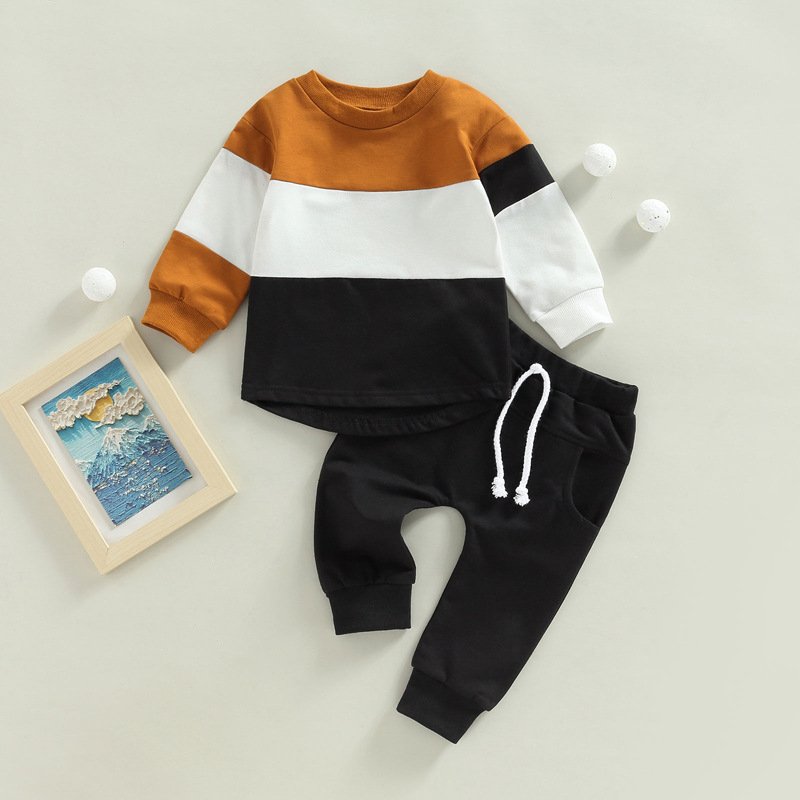 Toddlers Newborn Baby Fashion Boys Long Sleeve Color-Blocking Sweatshirt And Pants 2pcs Set