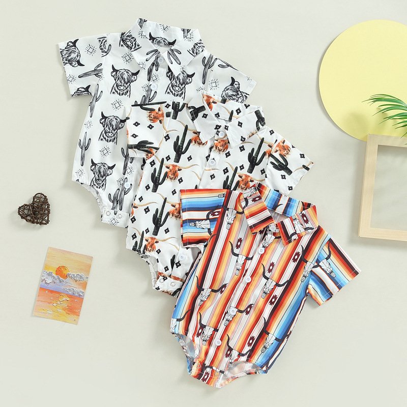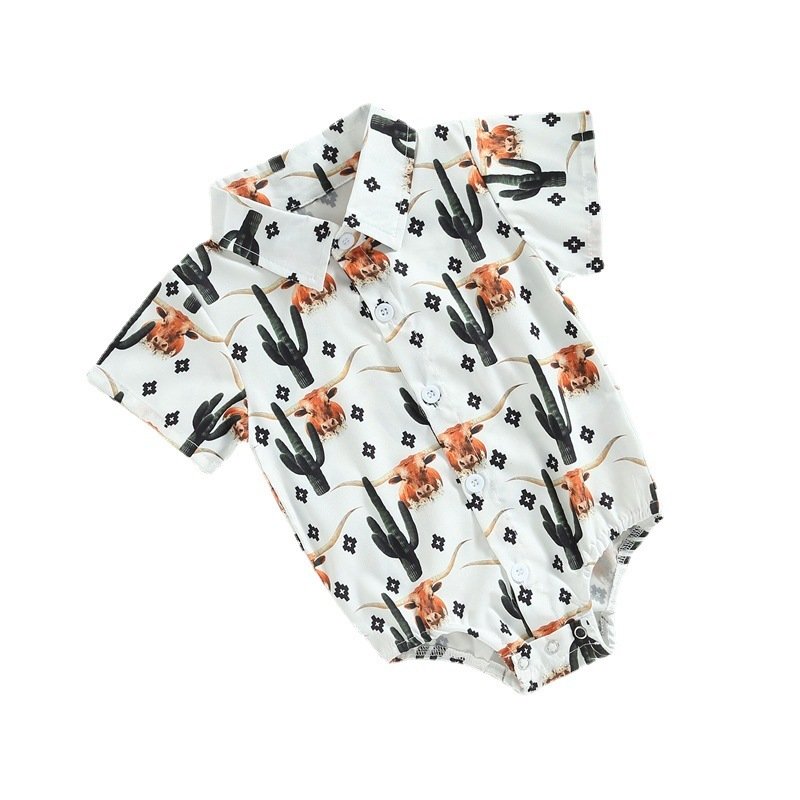 Toddlers Newborn Baby Fashion Boys Short Sleeve Cow Print Bodysuit