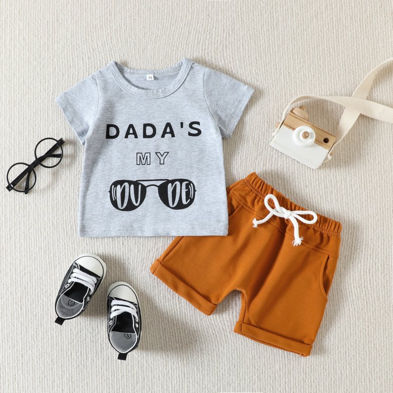 Toddlers Newborn Baby Fashion Boys Short Sleeve Letter Glasses Print Top And Shorts 2pcs Set