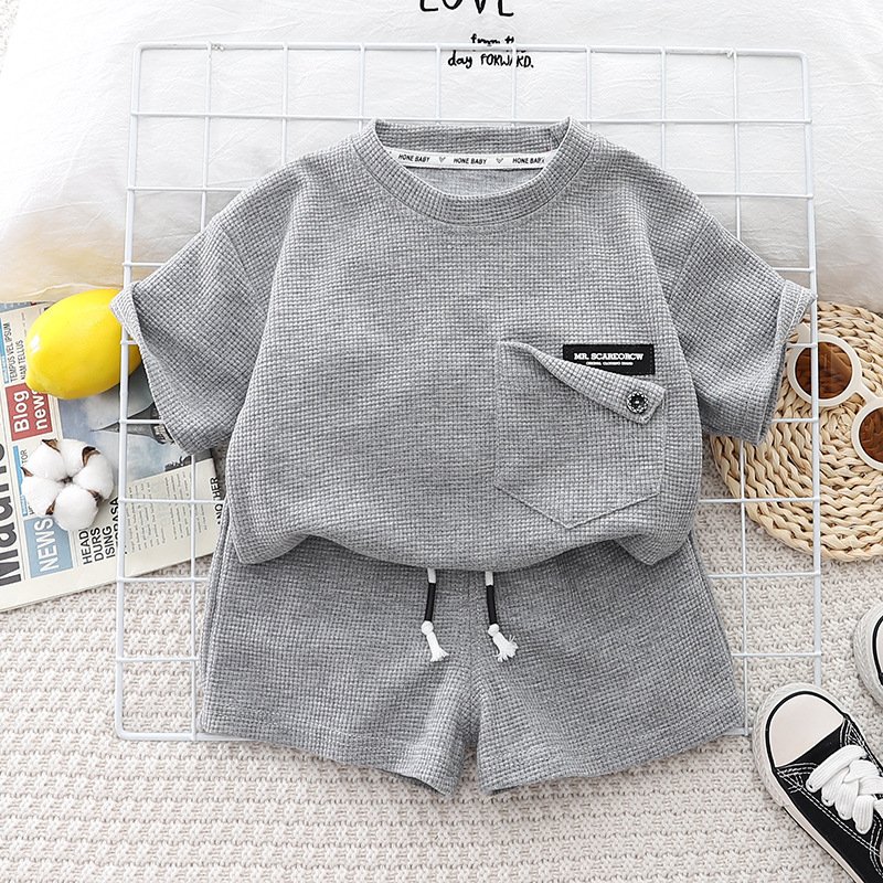 Toddlers Newborn Baby Fashion Boys Short Sleeve Solid Color T-Shirt And Shorts 2pcs Set