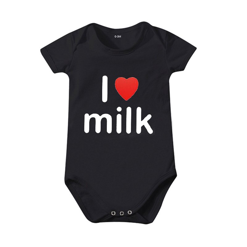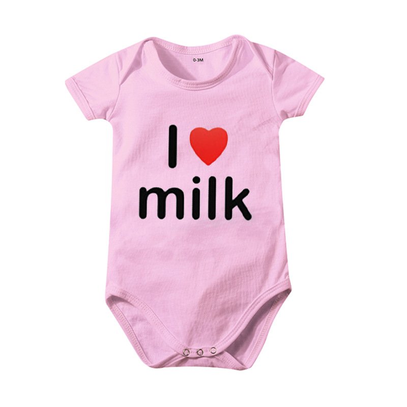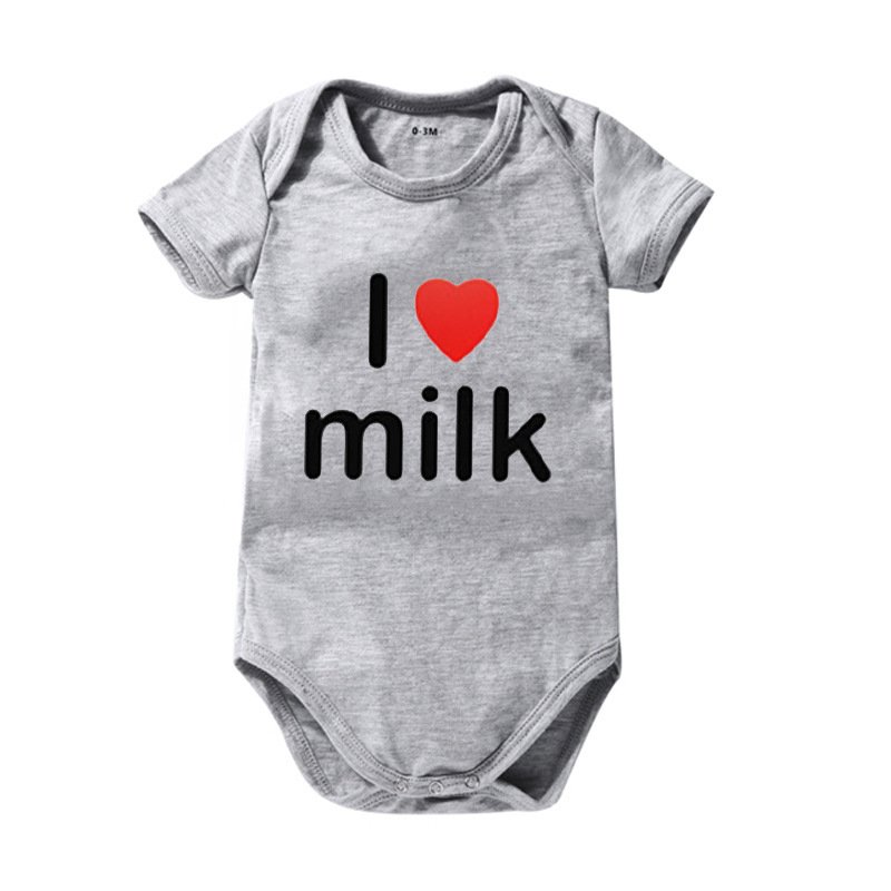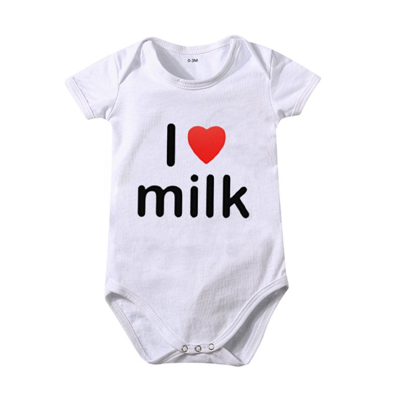 Toddlers Newborn Baby Fashion Girls Boys Basic Casual I Love Milk Print Short Sleeve Bodysuit