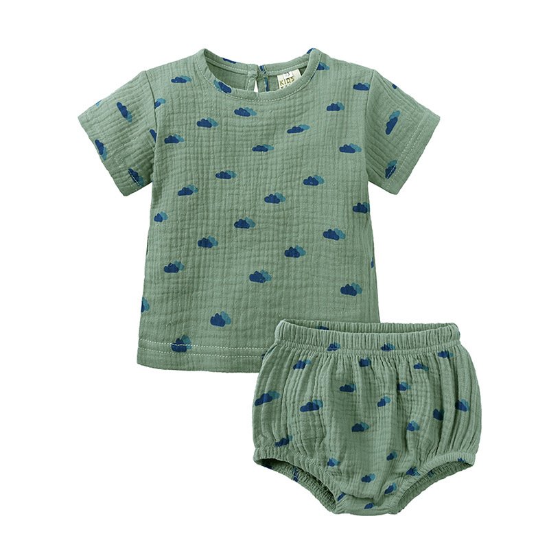 Toddlers Newborn Baby Fashion Girls Boys Basic Casual Short Sleeve Cartoon Print T-Shirt And Shorts 2pcs Set