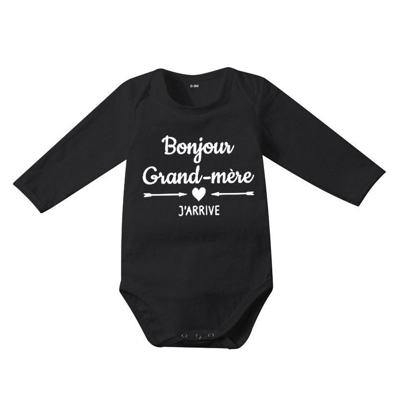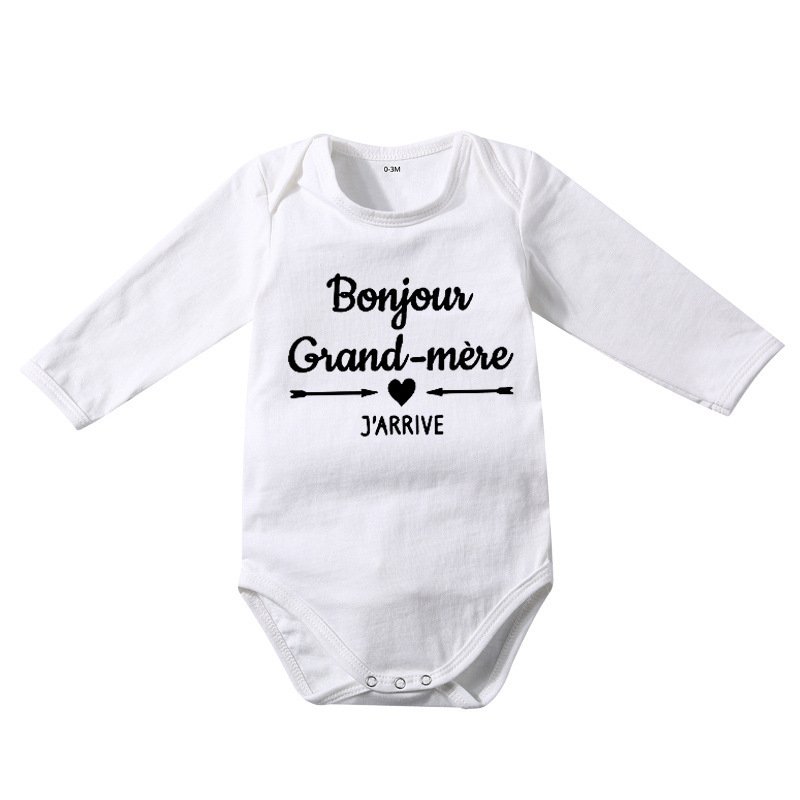 Toddlers Newborn Baby Fashion Girls Boys Casual Basic Long Sleeve Bonjour Grand Letter Print Bodysuit