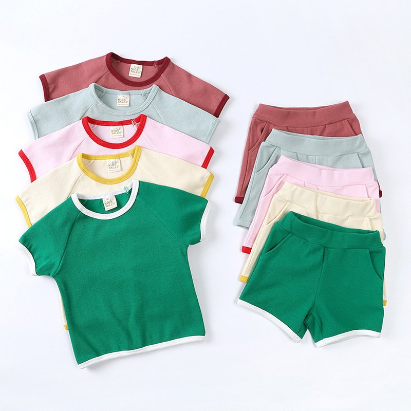 Toddlers Newborn Baby Fashion Girls Boys Casual Basic Short Sleeve Color Matching T-Shirt And Shorts 2pcs Set