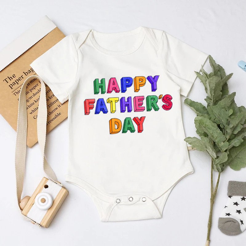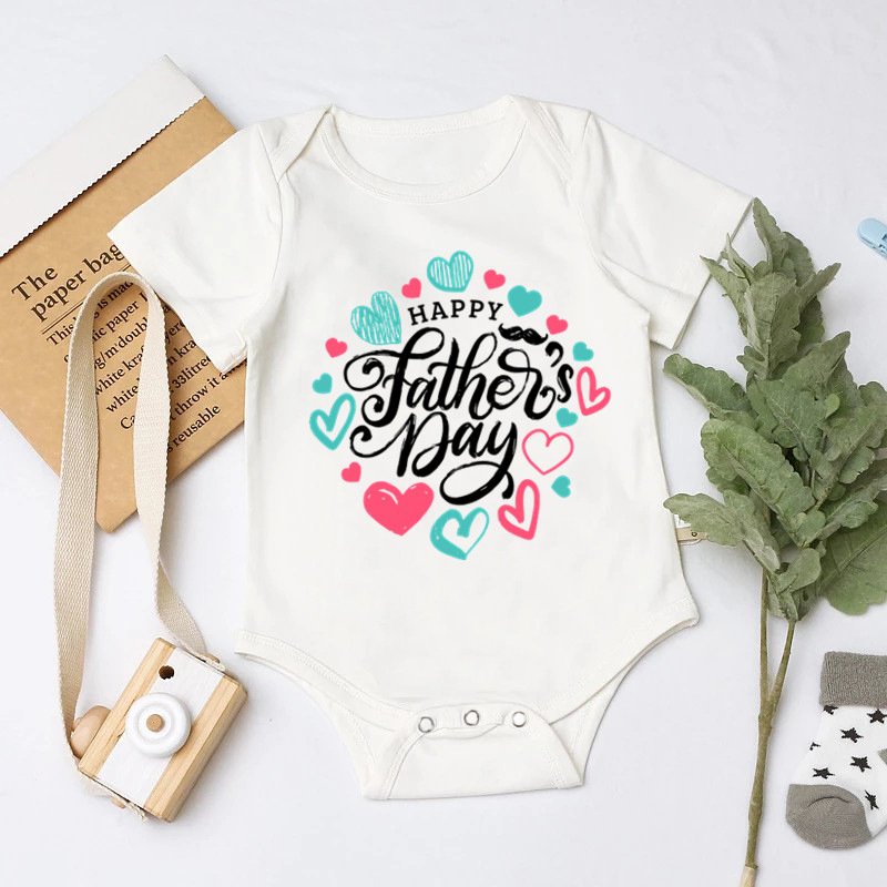 Toddlers Newborn Baby Fashion Girls Boys Casual Basic Short Sleeve Happy Father’s Day Print Bodysuit